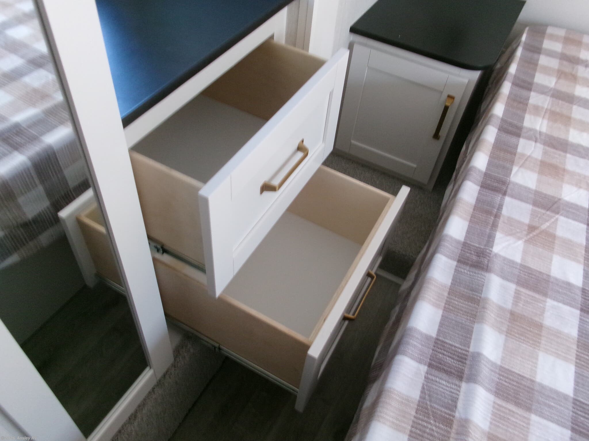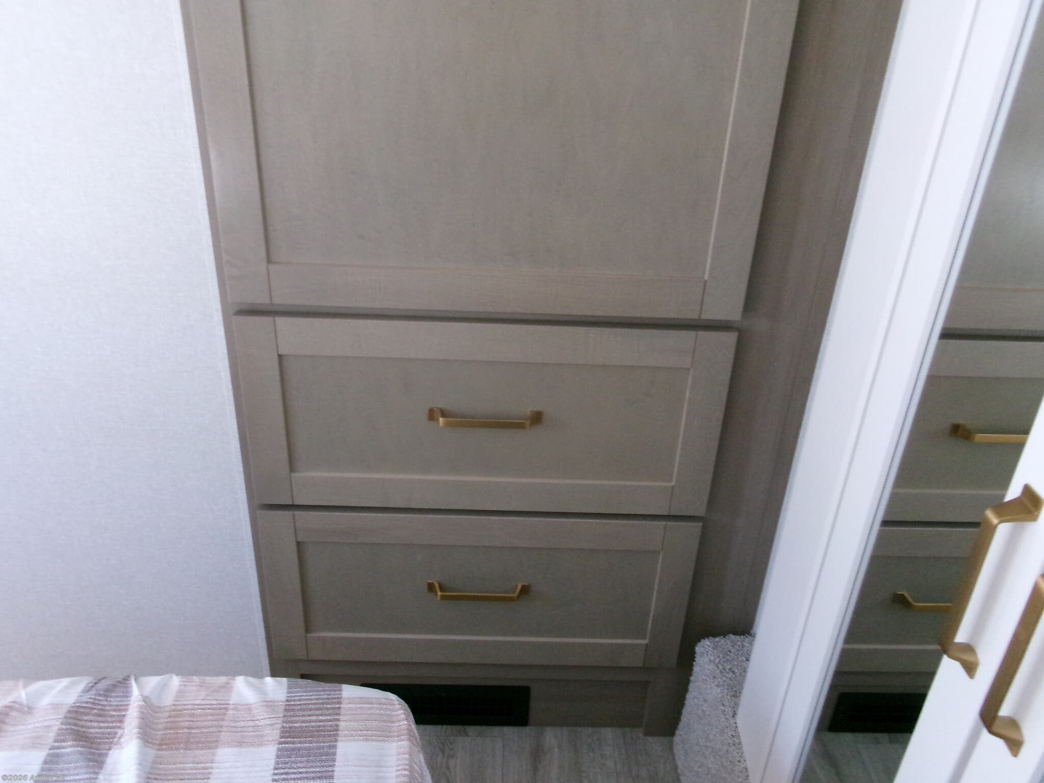 After a day of hiking, fishing, or exploring new destinations, retreat to the private master suite, where high-end finishes and smart design guarantee a restful night’s sleep. Gas-strutted under-bed storage provides extra room for all your essentials, and the design of the bed area is prepped for added convenience, including space for a CPAP machine. Panoramic windows let in natural light and fresh air, creating a breezy, open feel.