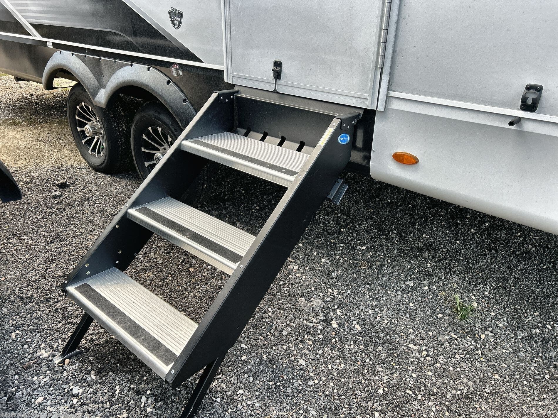 With any Eagle SLE fifth wheel by Jayco, you will enjoy a lighter tow weight, high-end finishes, and the same quality construction you've come to expect from Jayco! There is an Alpha Ply TPO roof membrane, a fully enclosed and heated underbelly, plus Stronghold VBL walls for added durability. There is also a rear 2" towing receiver outside, along with metal slam latch baggage doors, MORryde Step Above entry steps, and a Winegard Air 360 antenna with router prep if you want to stay connected as you camp. Once inside you'll enjoy the handcrafted and glazed door/drawer fronts, blackout pleated shades throughout, and residential vinyl flooring throughout with no carpet for an easier clean. The on-demand water heater, 30K BTU furnace, and 15K BTU "Whisper Quiet" A/C will ensure your comfort year around, and the optional Overland 1 Solar Package can be added if you need off-grid capabilities!