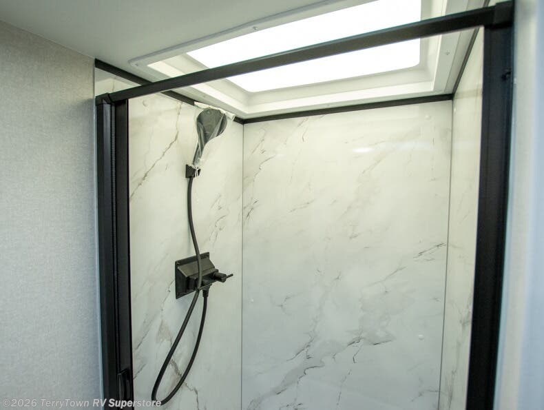 With any Eagle SLE fifth wheel by Jayco, you will enjoy a lighter tow weight, high-end finishes, and the same quality construction you've come to expect from Jayco! There is an Alpha Ply TPO roof membrane, a fully enclosed and heated underbelly, plus Stronghold VBL walls for added durability. There is also a rear 2" towing receiver outside, along with metal slam latch baggage doors, MORryde Step Above entry steps, and a Winegard Air 360 antenna with router prep if you want to stay connected as you camp. Once inside you'll enjoy the handcrafted door/drawer fronts, shower skylight, and residential vinyl flooring throughout with no carpet for an easier clean. The on-demand water heater, 30K BTU furnace, and 15K BTU "Whisper Quiet" A/C will ensure your comfort, and the Overland 1 Solar Package will provide off-grid capabilities!