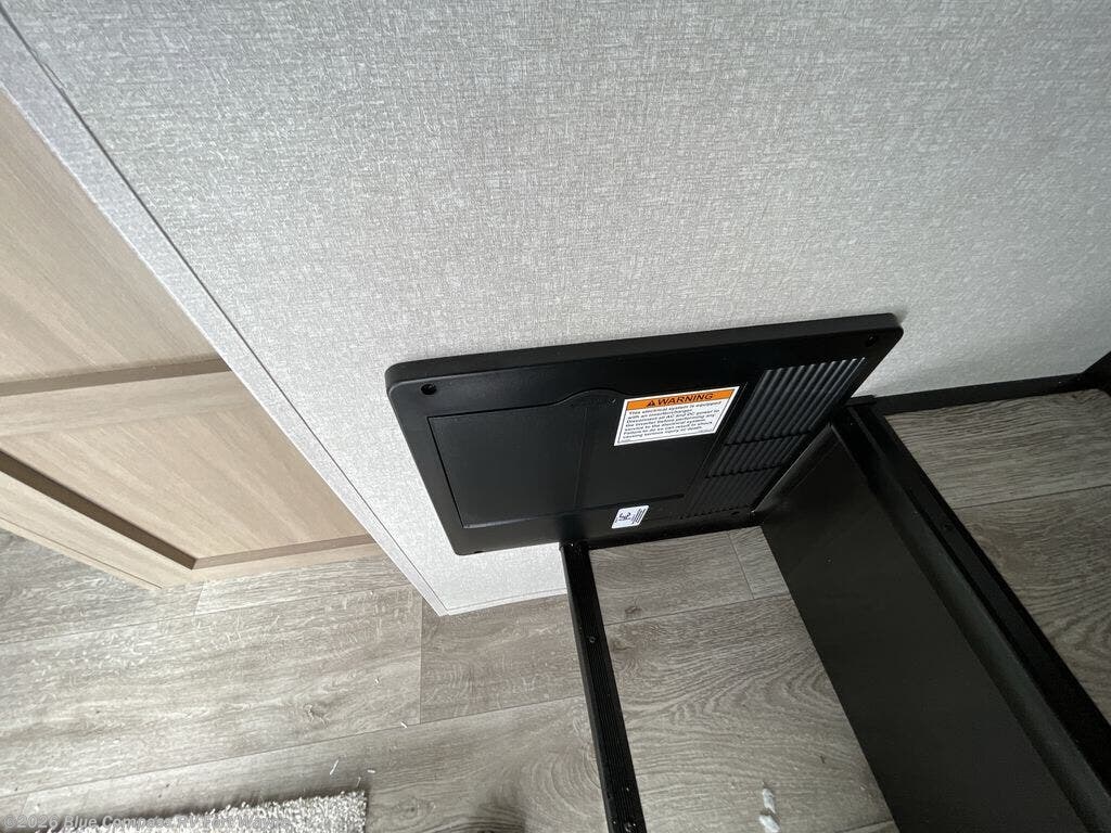 You can't go wrong when camping in this spacious fifth wheel! There are dual opposing slides in the living room, giving your crew plenty of space to prep dinner on the kitchen island, relax on the theater sofa, or dine at the booth dinette. There is also a rear tri-fold sofa where your guests can sleep! An entertainment center with a fireplace will make this space feel even more like home, and there are plenty of storage spaces for all your belongings. The full bath towards the front will let you freshen up each day, and the front private bedroom with a queen bed is sure to bring comfort. There are also dual nightstands, overhead cabinets, plus a wardrobe and dresser slide out, so everything has a place!