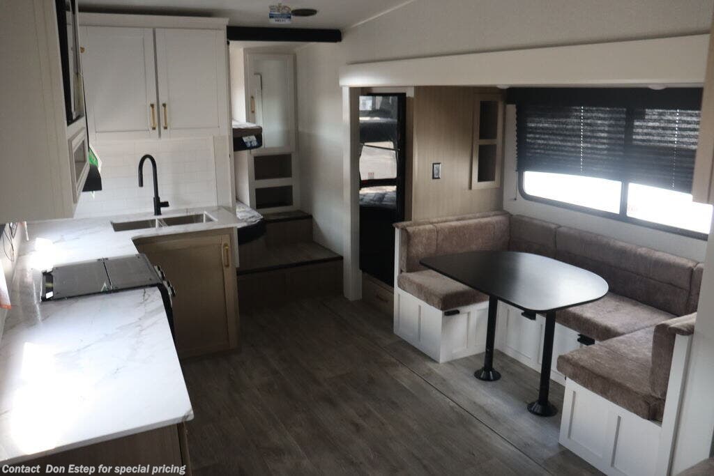 Picture this: crisp mountain air streaming through panoramic windows, the soft glow of an LED fireplace, and the perfect blend of rugged durability and refined comfort—all while parked beside a breathtaking lakeside retreat. The Jayco Eagle SLE Fifth Wheel is more than just an RV; it’s a gateway to unforgettable journeys. Whether you're a seasoned RVer or taking your first leap into the lifestyle, this beautifully designed, easy-to-tow fifth wheel is built to bring you closer to nature without sacrificing comfort. Whether you’re boondocking in the wilderness or camping lakeside with friends, this Jayco Fifth Wheel is designed to take you there in style, comfort, and confidence. The road is calling, and the Eagle SLE is ready to take you there.