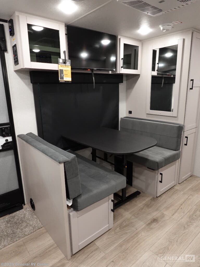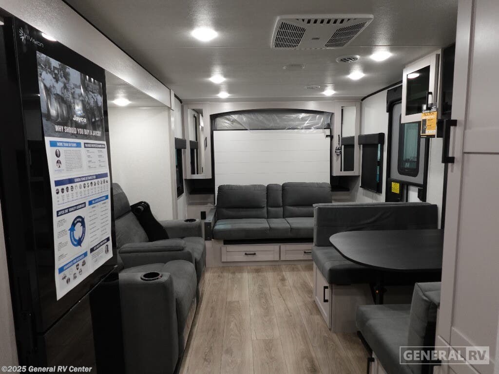 Experience the perfect blend of comfort and functionality with the 2026 Jayco Jay Feather 21MML. This travel trailer is designed for those who love to explore without sacrificing the comforts of home. Its compact size, at just over 25 feet in length, makes it a breeze to tow, while still offering a spacious interior. The front living area features a cozy theater seat, perfect for relaxing after a day of adventure. Adjacent is a convenient Murphy bed, allowing you to maximize your living space during the day and enjoy a restful night's sleep. The rear kitchen is a chef's delight, equipped with a full-size electric refrigerator and a three-burner cooktop, ensuring you can whip up delicious meals on the road. With ample storage, including a pantry and overhead cabinets, you'll have plenty of space for all your essentials. The rear bath provides privacy and convenience, complete with a shower and linen storage. Outside, the 15-foot powered retractable awning creates the perfect shaded retreat, ideal for enjoying the great outdoors with family and friends. The Jay Feather 21MML is designed to be your home away from home, with thoughtful features that make every journey enjoyable. Whether you're setting out on a weekend getaway or a cross-country adventure, this travel trailer is ready to accompany you. For more information or to see it in person, visit your nearest General RV dealership.