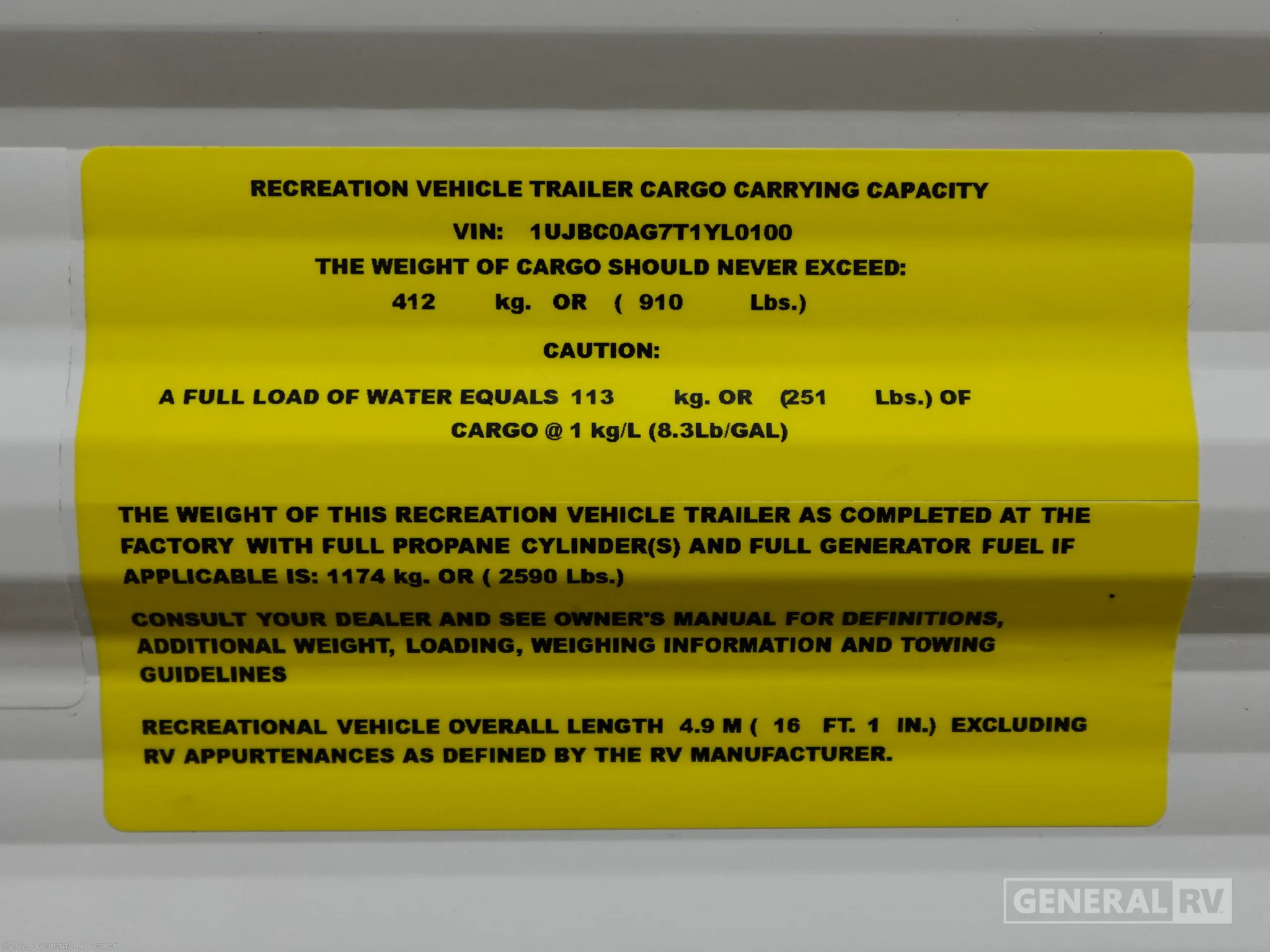 - VIN1UJBC0AG7T1YL0100