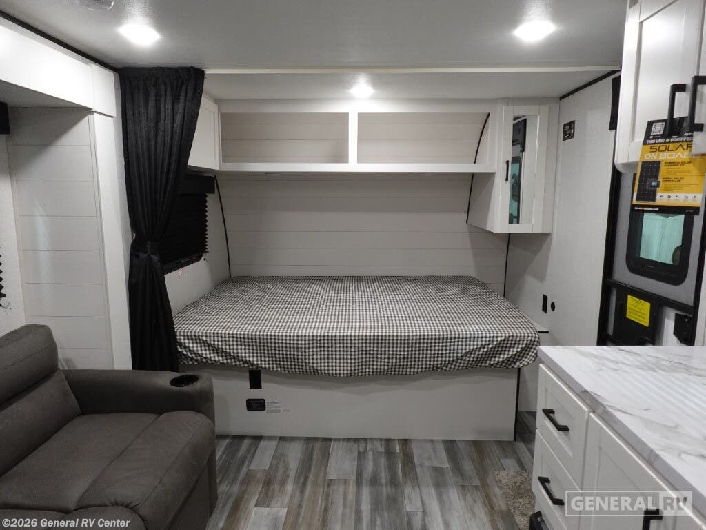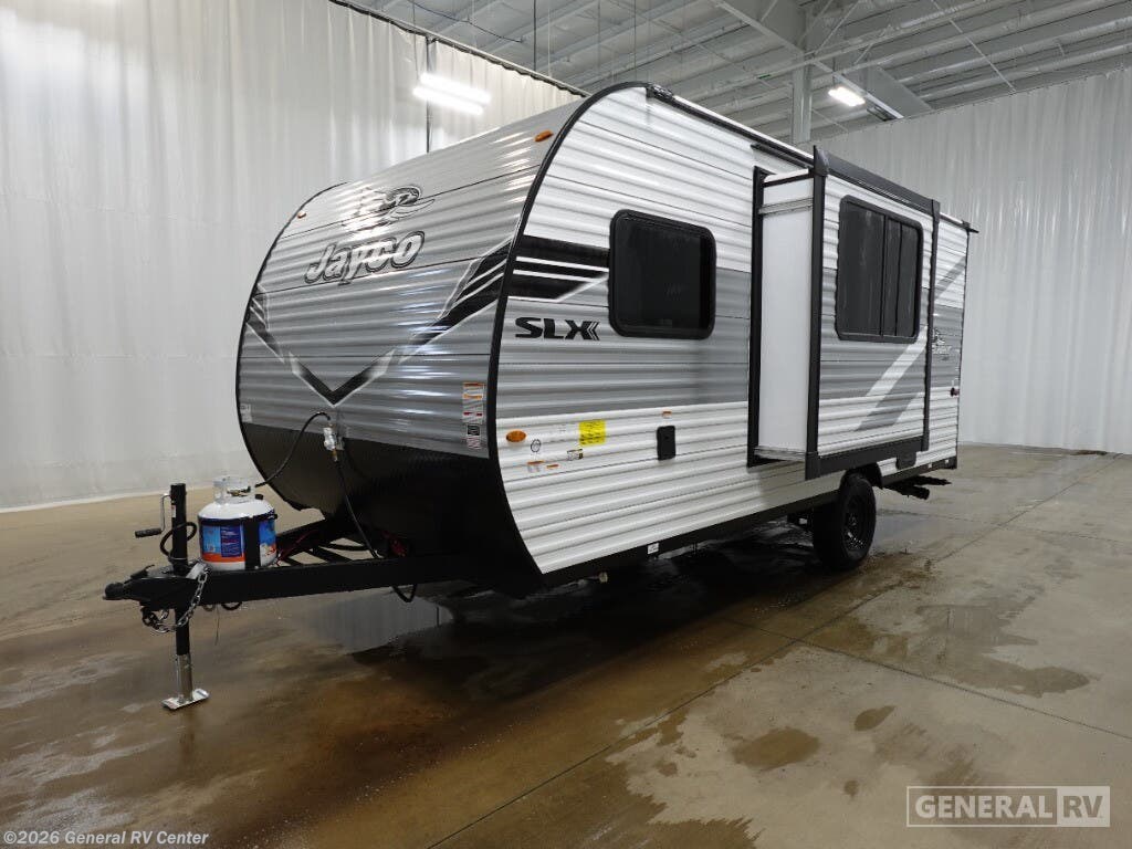 Experience the perfect blend of comfort and convenience with the 2026 Jayco Jay Flight SLX 160LK. This compact yet spacious travel trailer is designed for adventurers who crave both mobility and the comforts of home. With a length of just over 21 feet, it's easy to tow yet packed with features that make every journey enjoyable. The center kitchen, equipped with a two-burner cooktop and mid-size electric refrigerator, is perfect for whipping up meals on the go. The movable table and jack-knife sofa offer flexibility, transforming the space for dining or lounging as needed. Relax in the cozy queen bed after a day of exploration, and enjoy the convenience of a rear bath featuring a tub/shower with a curtain for privacy. The 12 ft. powered retractable awning extends your living space outdoors, providing shade and comfort. With ample storage, including overhead cabinets and a nightstand wardrobe, you’ll have no trouble keeping your essentials organized. This model is perfect for families or couples, sleeping up to four comfortably, making it an ideal choice for your next adventure. For more information, visit your nearest General RV dealership.