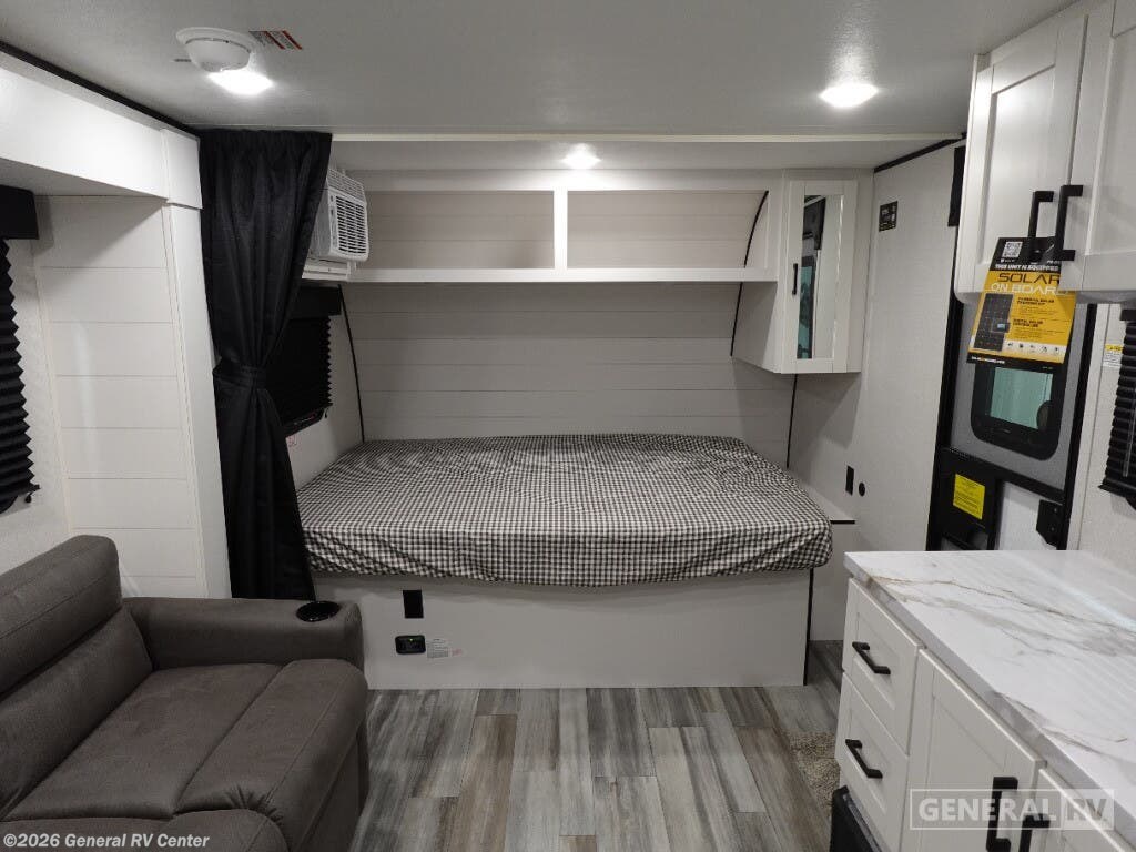 Experience the perfect blend of comfort and convenience with the 2026 Jayco Jay Flight SLX 160LK. This compact yet spacious travel trailer is designed for adventurers who crave both mobility and the comforts of home. With a length of just over 21 feet, it's easy to tow yet packed with features that make every journey enjoyable. The center kitchen, equipped with a two-burner cooktop and mid-size electric refrigerator, is perfect for whipping up meals on the go. The movable table and jack-knife sofa offer flexibility, transforming the space for dining or lounging as needed. Relax in the cozy queen bed after a day of exploration, and enjoy the convenience of a rear bath featuring a tub/shower with a curtain for privacy. The 12 ft. powered retractable awning extends your living space outdoors, providing shade and comfort. With ample storage, including overhead cabinets and a nightstand wardrobe, you’ll have no trouble keeping your essentials organized. This model is perfect for families or couples, sleeping up to four comfortably, making it an ideal choice for your next adventure. For more information, visit your nearest General RV dealership.