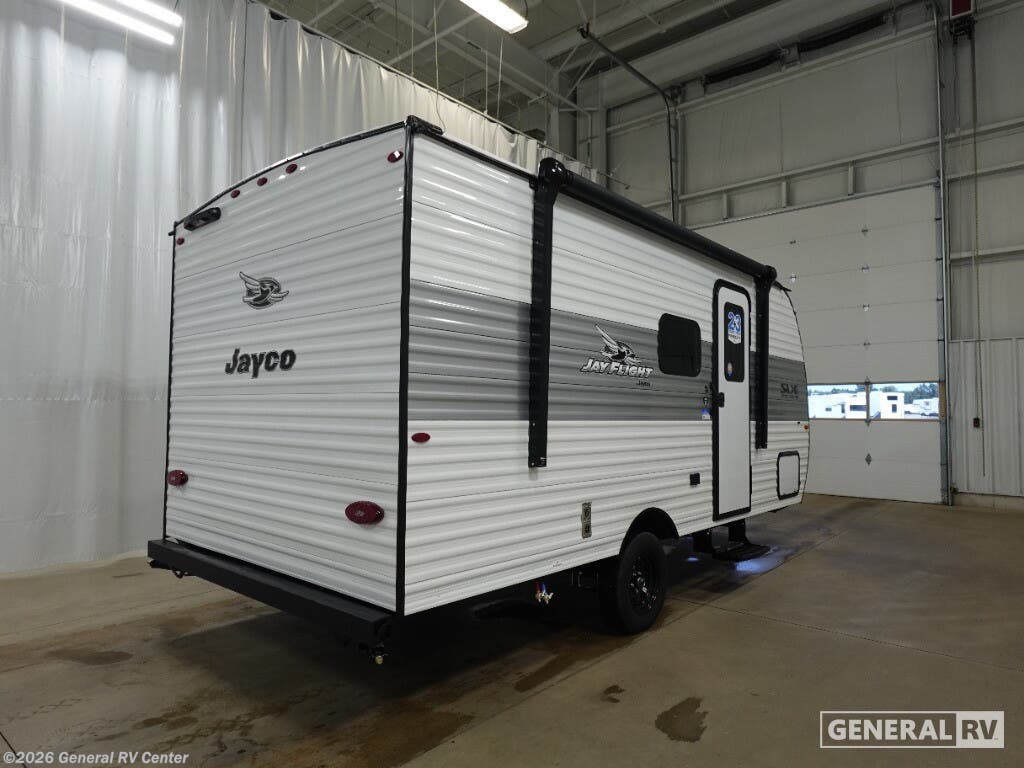 Experience the joy of adventure with the 2026 Jayco Jay Flight 170BH, a marvel of compact design and comfort. This travel trailer is perfect for families, offering sleeping space for up to five with a cozy queen bed and a set of bunk beds. The cleverly designed interior maximizes every inch, providing a seamless blend of functionality and style. Imagine cooking delicious meals on the two-burner cooktop, while the 12V refrigerator keeps your ingredients fresh and ready. The Jay Flight 170BH is not just about indoor comfort; it extends to outdoor enjoyment with a 10' power awning that provides a perfect shaded retreat. With a dry weight of just 3,075 pounds, it's easy to tow, making it an ideal choice for both seasoned travelers and those new to the RV lifestyle. The on-demand tankless water heater ensures you have hot water whenever you need it, enhancing your camping experience. Discover the freedom of the open road with this compact yet spacious travel companion. For more details, visit your nearest General RV dealership.