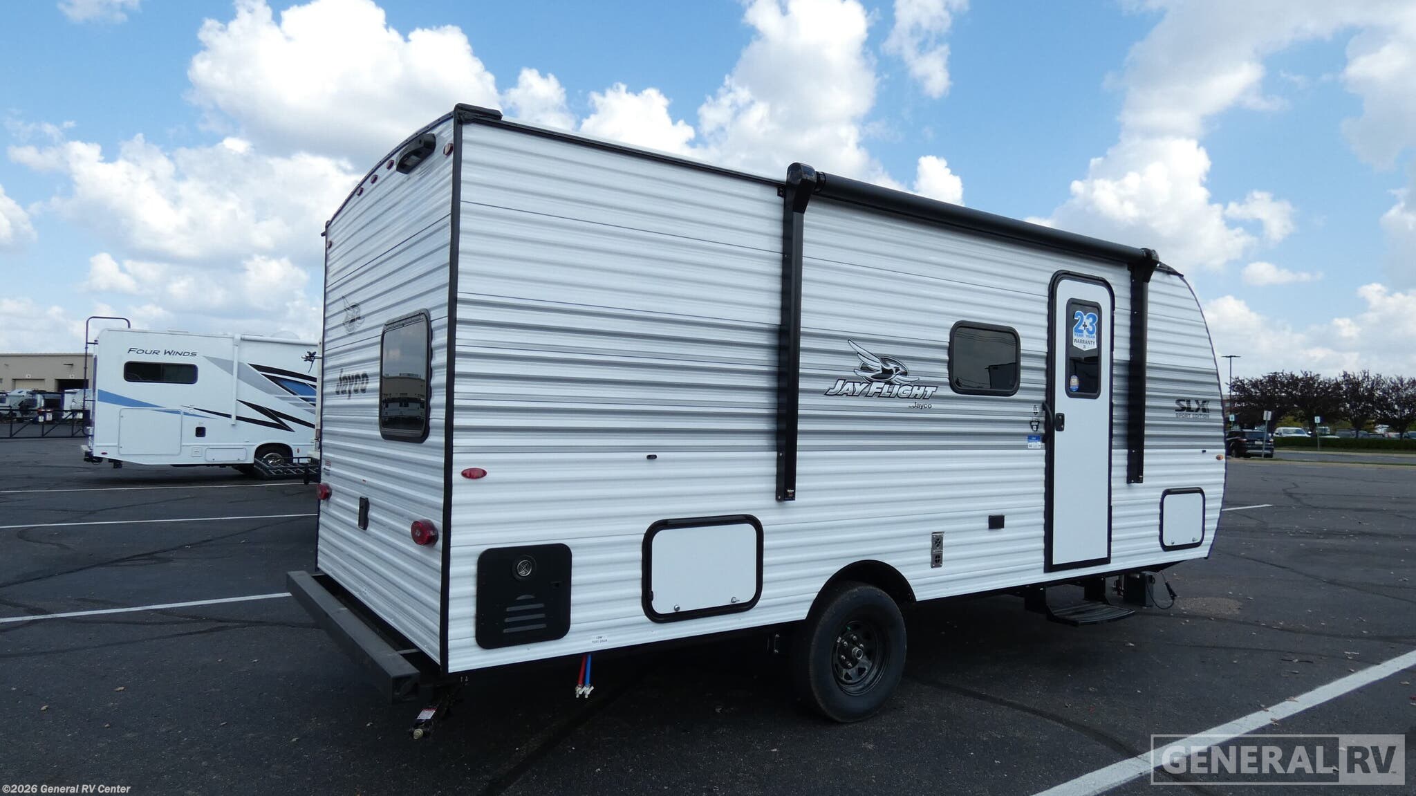 Experience the perfect blend of comfort and adventure with the 2026 Jayco Jay Flight SLX 178DBS. This compact yet spacious travel trailer is designed to accommodate up to seven sleepers, making it an ideal choice for families or groups seeking memorable road trips. The layout includes a cozy queen bed and a double over double bunk bed, ensuring everyone has their own comfortable space. The U-dinette slide-out not only provides additional room but also transforms into extra sleeping space, offering versatility for any camping scenario. The Jay Flight SLX 178DBS is equipped with thoughtful amenities to enhance your travel experience. The kitchen area features a fridge and pantry, perfect for storing your favorite meals and snacks. The bathroom is conveniently located and includes a shower, ensuring all the comforts of home are at your fingertips. With a 10-foot awning, you can enjoy outdoor living in the shade, making it a great spot for relaxation or entertaining. Whether you're exploring the countryside or setting up camp at your favorite spot, this travel trailer offers everything you need for a delightful getaway. For more details or to see this model in person, visit your nearest General RV dealership.