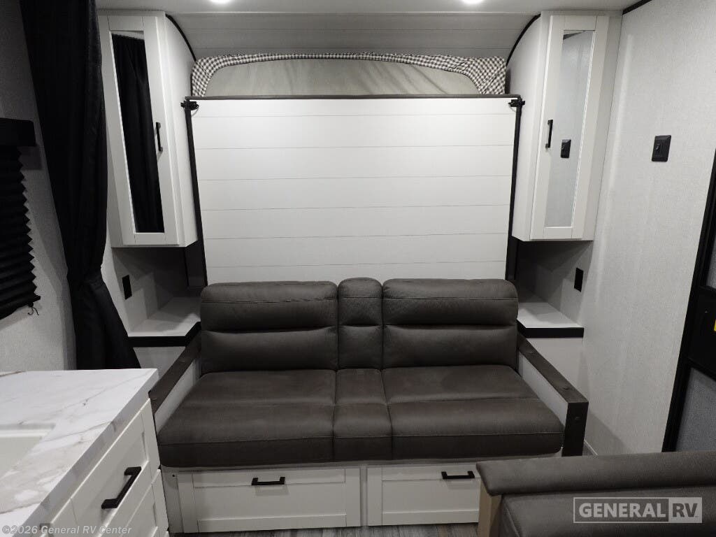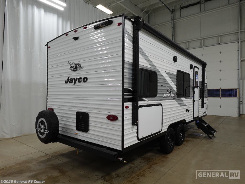 Experience the perfect blend of comfort and functionality with the 2026 Jayco Jay Flight SLX 211MB. This RV is designed to accommodate your family's adventures with ease, offering sleeping arrangements for up to eight people. The innovative floorplan features a versatile Murphy bed that transforms the front living area into a cozy retreat by night and a spacious seating area by day. The double over double bunk beds provide ample sleeping space for the kids or guests, while the convertible dinette offers additional flexibility. The center kitchen is equipped with a mid-size electric refrigerator and a three-burner cooktop, making meal prep a breeze. Enjoy alfresco dining under the 13-foot powered retractable awning, perfect for those sunny days at the campsite. The rear bath, complete with a shower and curtain, ensures privacy and convenience. With a generous fresh water capacity of 84 gallons, this RV is ready for extended stays off the grid. Built for adventure, the Jay Flight SLX 211MB combines practicality with style, ensuring every journey is a memorable one. Ready to explore more? Visit your nearest General RV Dealership to discover all the features of this fantastic model.
