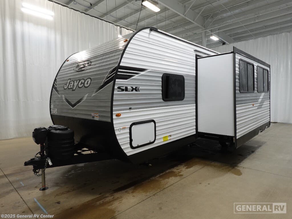 Discover the 2026 Jayco Jay Flight SLX 261BHS, where comfort and adventure meet in perfect harmony. This RV is designed to accommodate up to ten people, making it ideal for family trips or group getaways. As you enter, you'll find a beautifully arranged center kitchen equipped with a mid-size electric refrigerator and a three-burner cooktop, perfect for preparing delicious meals on the road. The adjacent center living area features a cozy jack-knife sofa, creating a welcoming space to relax and unwind. The front bedroom offers a queen-sized bed with ample wardrobe space, ensuring restful nights after a day of exploration. At the rear, the double bunks provide additional sleeping options, while the bathroom with a tub/shower combo ensures convenience for everyone. The 16-foot powered retractable awning extends your living space outdoors, allowing you to enjoy the beauty of nature in comfort. With a generous fresh water capacity of 76 gallons and a cargo capacity of 1296 pounds, this RV is ready for extended adventures. Whether you're planning a weekend getaway or a cross-country journey, the Jayco Jay Flight SLX 261BHS promises a memorable experience with its thoughtful design and reliable features. For more details or to see this model in person, visit your nearest General RV dealership.