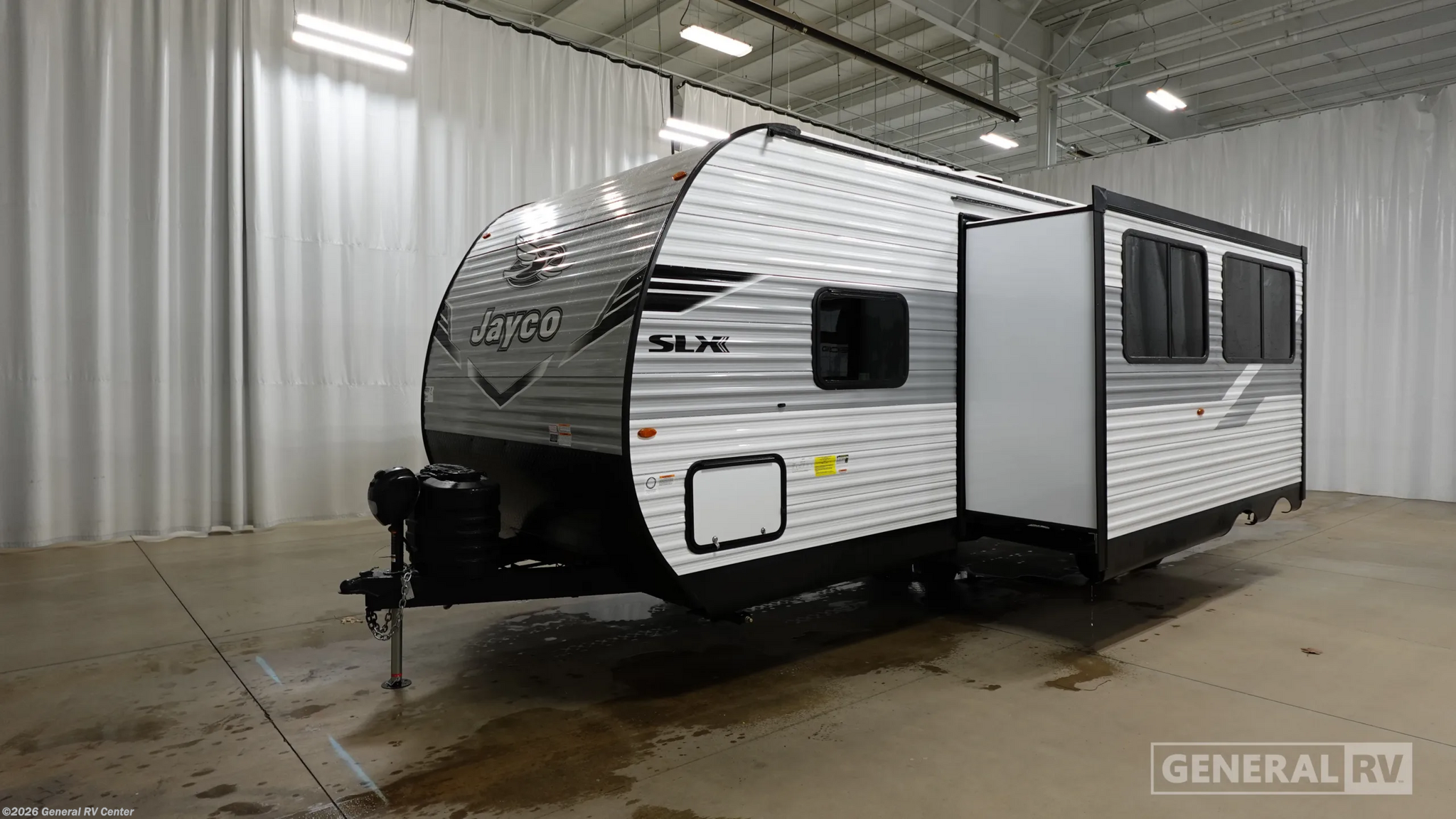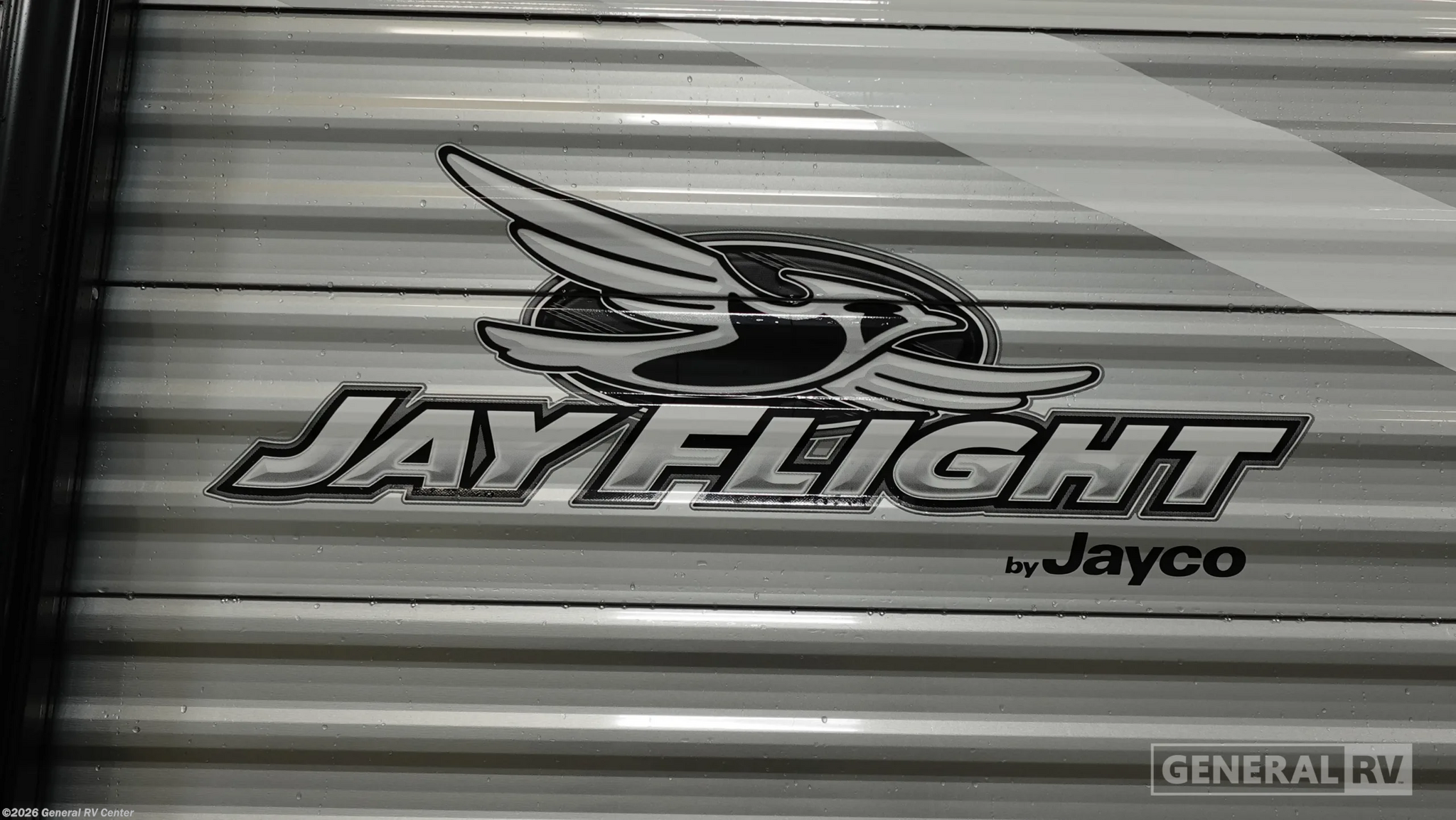 Discover the 2026 Jayco Jay Flight SLX 261BHS, where comfort and adventure meet in perfect harmony. This RV is designed to accommodate up to ten people, making it ideal for family trips or group getaways. As you enter, you'll find a beautifully arranged center kitchen equipped with a mid-size electric refrigerator and a three-burner cooktop, perfect for preparing delicious meals on the road. The adjacent center living area features a cozy jack-knife sofa, creating a welcoming space to relax and unwind. The front bedroom offers a queen-sized bed with ample wardrobe space, ensuring restful nights after a day of exploration. At the rear, the double bunks provide additional sleeping options, while the bathroom with a tub/shower combo ensures convenience for everyone. The 16-foot powered retractable awning extends your living space outdoors, allowing you to enjoy the beauty of nature in comfort. With a generous fresh water capacity of 76 gallons and a cargo capacity of 1296 pounds, this RV is ready for extended adventures. Whether you're planning a weekend getaway or a cross-country journey, the Jayco Jay Flight SLX 261BHS promises a memorable experience with its thoughtful design and reliable features. For more details or to see this model in person, visit your nearest General RV dealership.