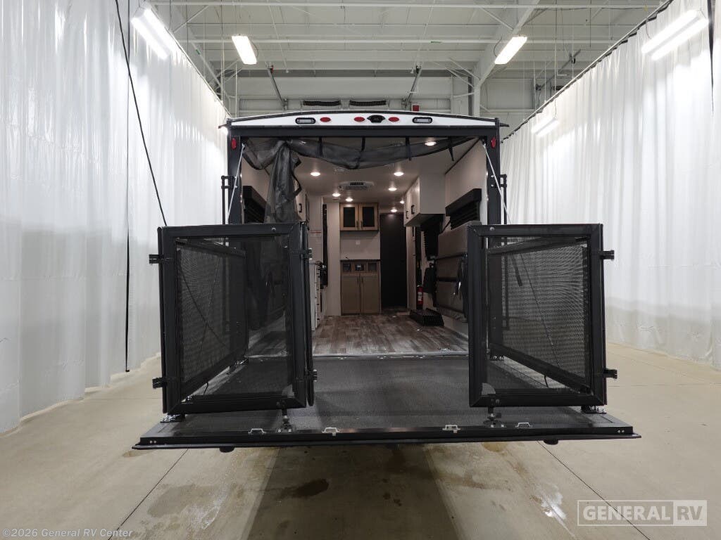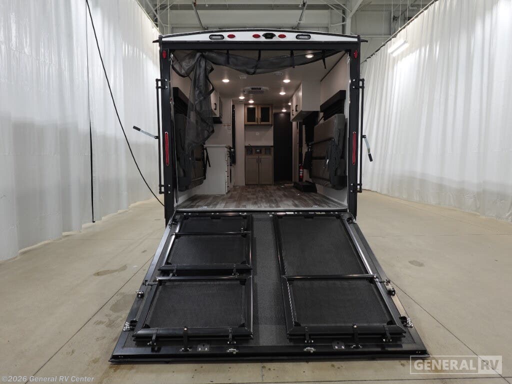 Jayco Jay Flight SLX toy hauler 265TH highlights: Pass-Thru Storage 7' Ramp with Spring Assist Flip-Up Bar Top w/Stools Convertible Sofas Double Entry Bathroom When you are ready to ride your off-road toys, relax in the great outdoors and unwind after a ride and do it all over again the next day, then load up and head to the campsite! You will have 5' 11" of cargo space plus a little more space in between the kitchen amenities and the flip-up bar top with stools to load more gear and such. The 7' 3" opening and 7' ramp door makes unloading easy as well. The convertible sofas and removable table allow more to dine, and the double entry bathroom will keep everyone clean before bedtime. The front bedroom offers privacy for the owners, and comfortable nights on a queen bed. And the power awning offers shade during the daytime when you want to relax outside. The Jayco Jay Flight SLX toy hauler travel trailer is quite easy to own because it is lightweight for an easier towing experience. Built on a fully integrated A-frame with galvanized-steel, impact-resistant wheel wells, the Jay Flight SLX has quality at its very foundation. That quality continues on to the electric self-adjusting brakes, easy-lube hubs, Magnum Truss roof system, and LP quick connect. Some of what the mandatory Customer Value Package includes is backup camera prep, Keyed-Alike entry and baggage doors, and an on-demand tankless water heater.