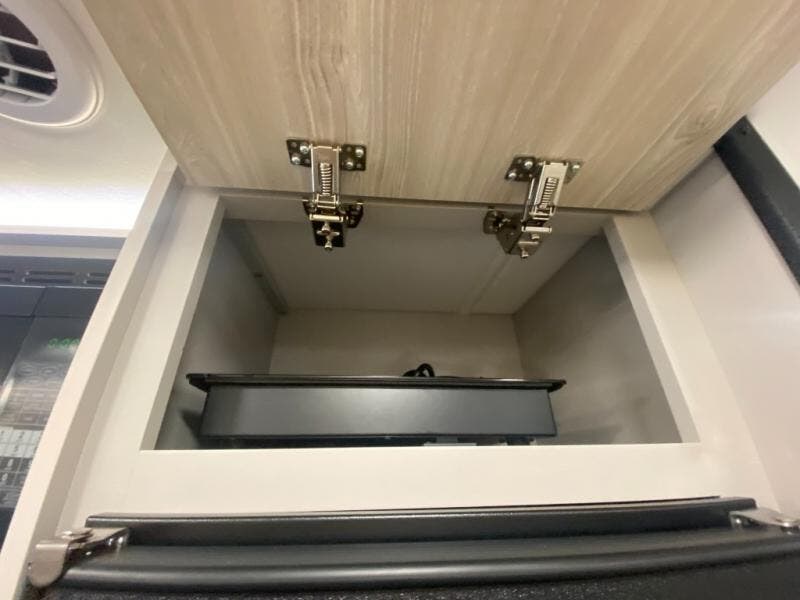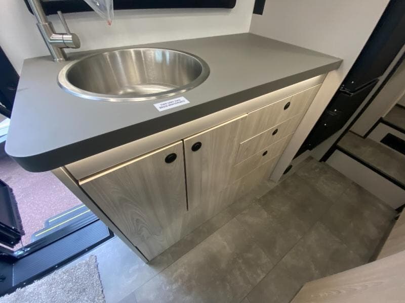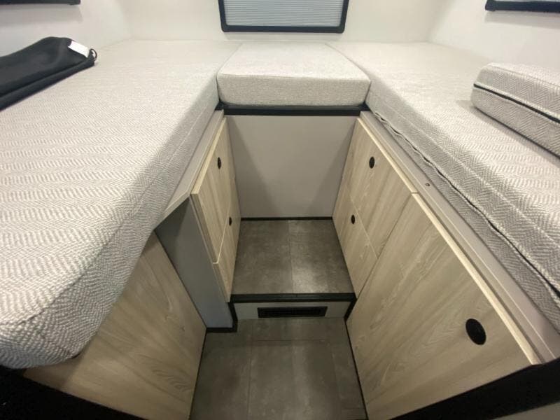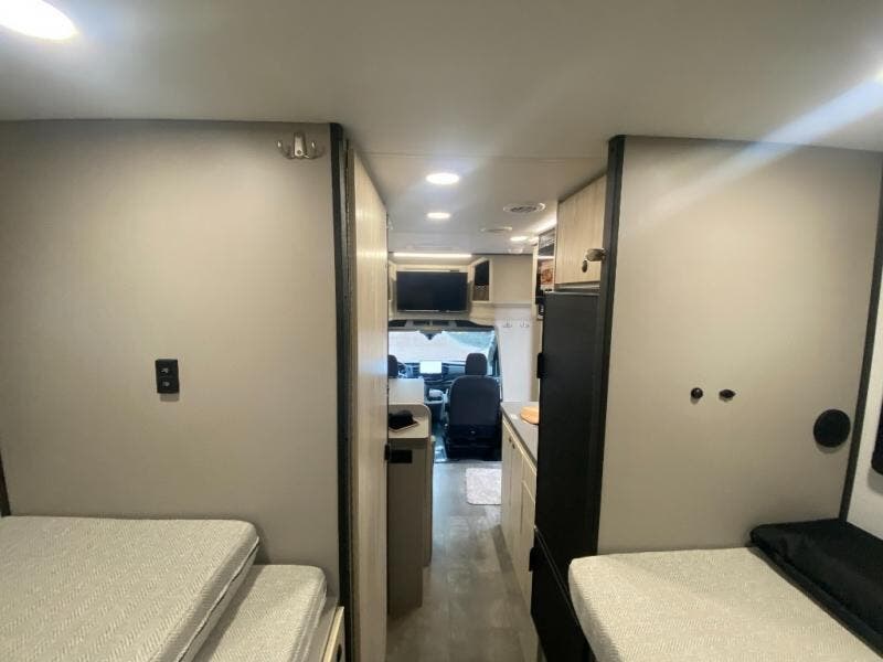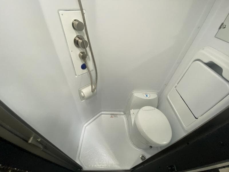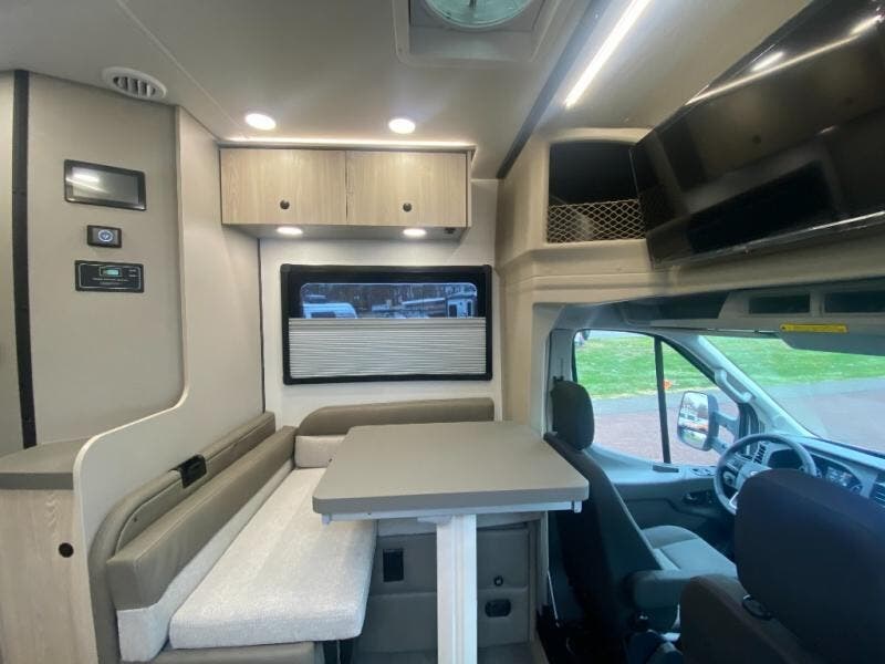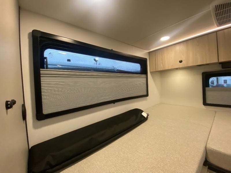 Whether you're roughing it in the mountains or relaxing in the woods, this coach is sure to meet all your needs. The swivel seats can turn around once you're parked to become a part of the living space, and you'll also find a dinette lounge here where you can enjoy your coffee at each morning. There is an induction cooktop and a convection microwave to prepare dinner, a 5.3 cu. ft. 12V refrigerator to store cold items, and even a pantry for snacks! This van is perfect for couples or friends since there are twin beds with a king bed conversion so you can choose two beds or one big bed. And the wet bath onboard will let you clean up each day.