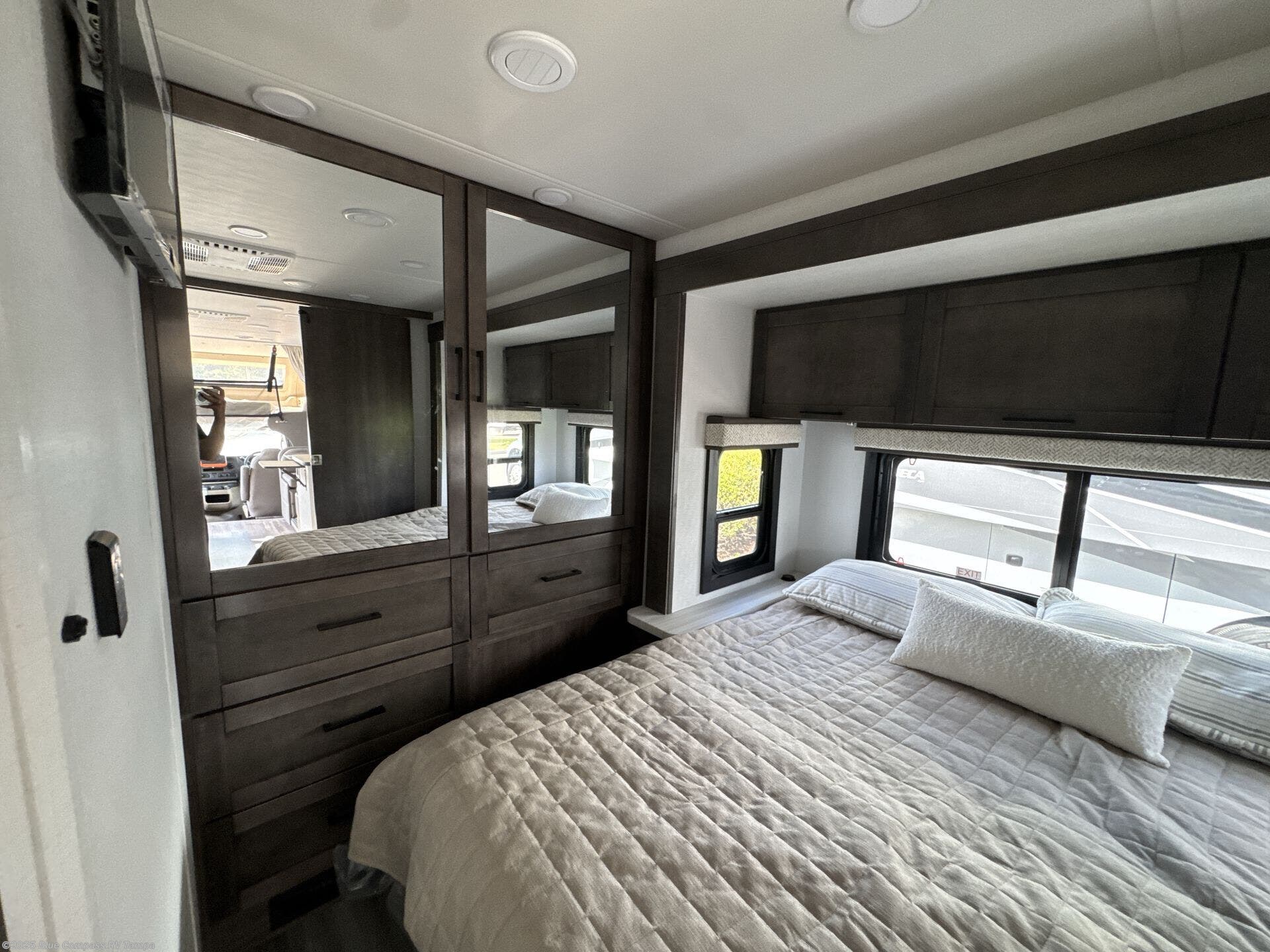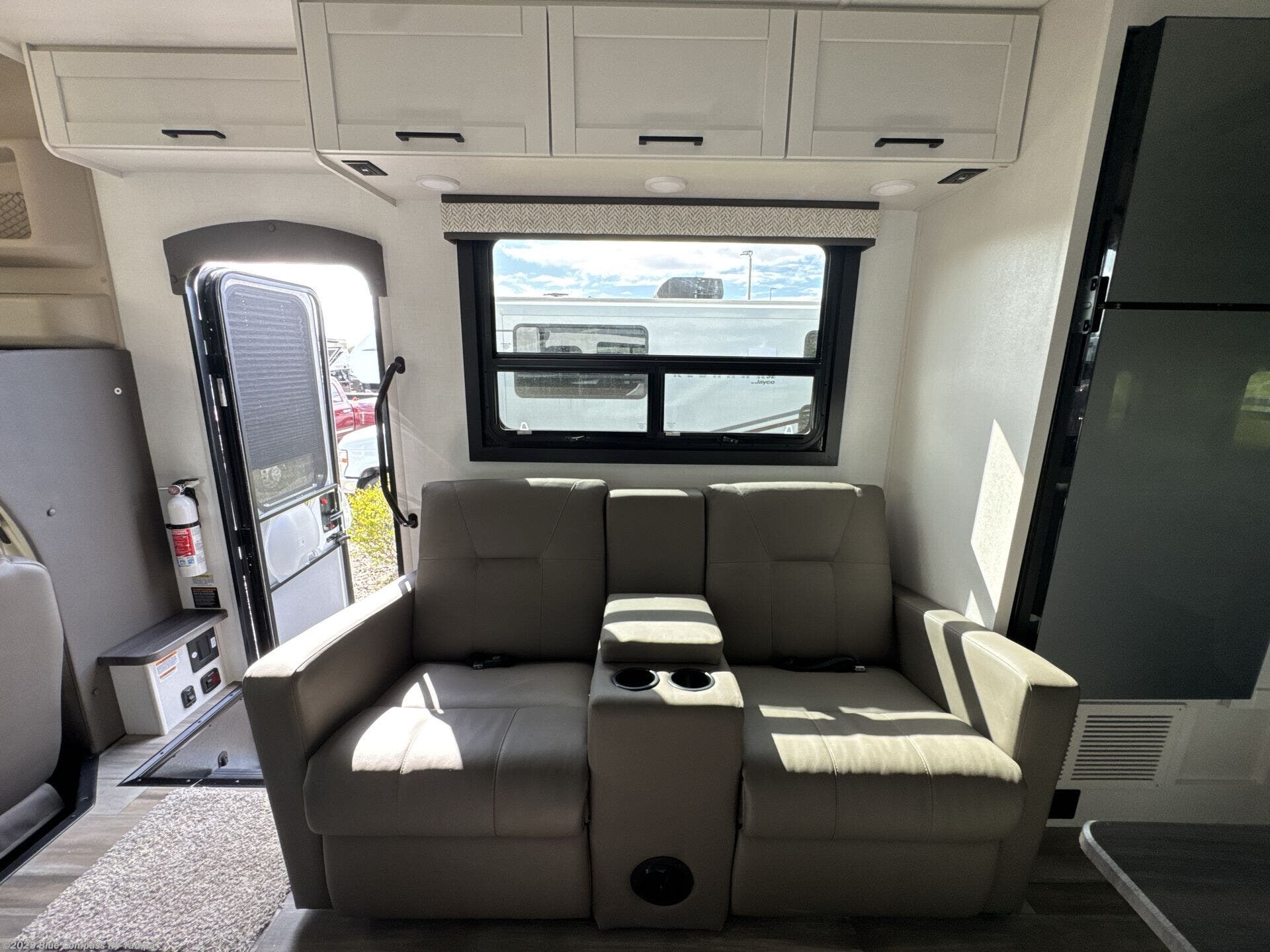Trips across state lines just got sweeter in this motorhome for five to six. The swivel captain's seats can become a part of the living area once you park, and your guests can get comfortable on the 42" x 70" booth dinette or 68" jackknife sofa. There is a cab-over bunk the kids will love, and the LED HD Smart TV will allow you to enjoy movies. The chef of your group can prepare meals on the Furrion all-in-one cooktop and oven, and leftovers can go in the 10 cu. ft. 12V refrigerator. You will feel right at home in the bedroom suite with its king bed slide out, large wardrobe, and access to the rear corner bathroom. Get started on your getaway today in this cozy Class C motorhome!