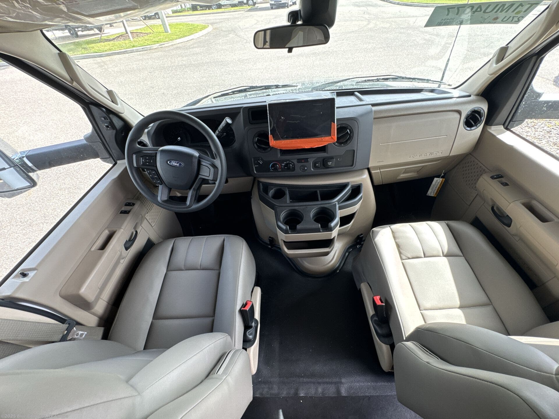 With any Greyhawk Class C gas motorhome by Jayco you will experience smooth sailing thanks to the JRIDE PLUS that comes with Koni shock absorbers, a computer-balanced driveshaft, Hellwig helper springs, and more. The Ford E-450 chassis with a 7.3L V8 325 HP engine will power your excursions, and you'll appreciate the added safety features for your peace of mind. Each model features a Sony infotainment center with Apple CarPlay and Android Auto, backup and side-view cameras, and a tire pressure monitor system the driver is sure to appreciate. Durable construction begins with Stronghold VBL roof, floor and sidewalls, bead-foam insulation, and a one-piece seamless fiberglass front cap. Head inside to find blackout night roller shades, LED-lit pressed countertops, an 84" interior ceiling height, and hardwood cabinet doors and drawers.