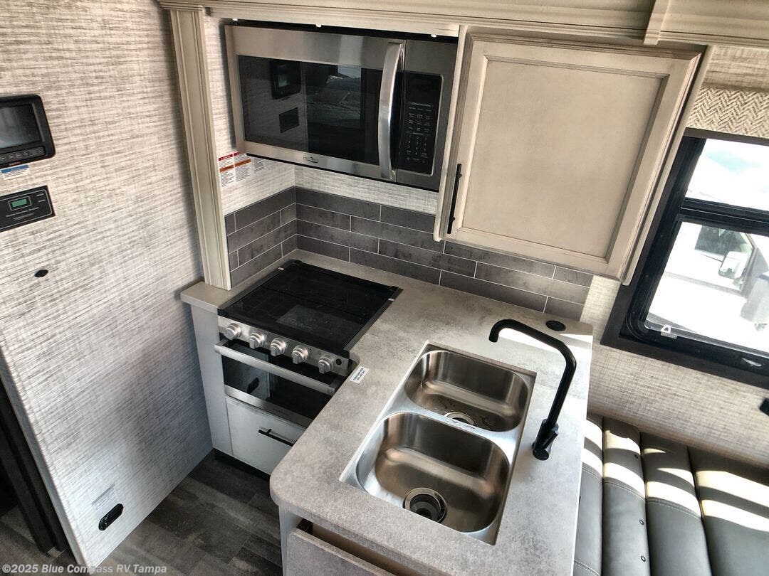 Trips across state lines just got sweeter in this motorhome for five to six. The swivel captain's seats can become a part of the living area once you park, and your guests can get comfortable on the 42" x 70" booth dinette or 68" jackknife sofa. There is a cab-over bunk the kids will love, and the LED HD Smart TV will allow you to enjoy movies. The chef of your group can prepare meals on the Furrion all-in-one cooktop and oven, and leftovers can go in the 10 cu. ft. 12V refrigerator. You will feel right at home in the bedroom suite with its king bed slide out, large wardrobe, and access to the rear corner bathroom. Get started on your getaway today in this cozy Class C motorhome!