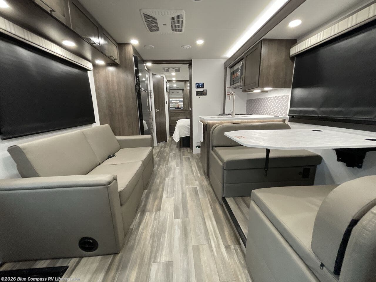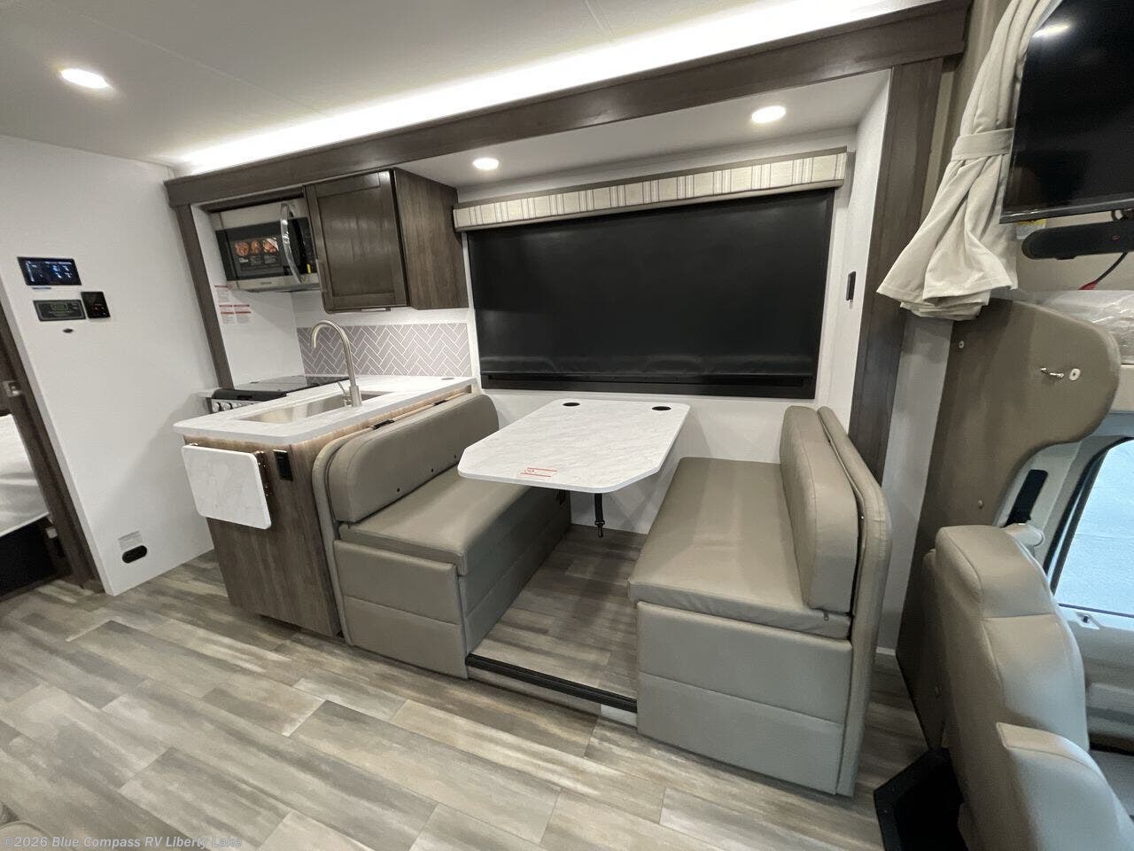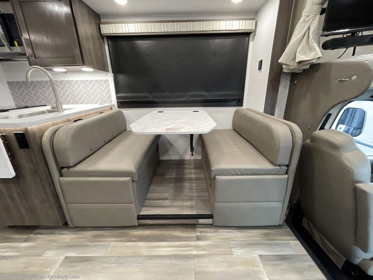 Trips across state lines just got sweeter in this motorhome for five to six. The swivel captain's seats can become a part of the living area once you park, and your guests can get comfortable on the 42" x 70" booth dinette or 68" jackknife sofa. There is a cab-over bunk the kids will love, and the LED HD Smart TV will allow you to enjoy movies. The chef of your group can prepare meals on the Furrion all-in-one cooktop and oven, and leftovers can go in the 10 cu. ft. 12V refrigerator. You will feel right at home in the bedroom suite with its king bed slide out, large wardrobe, and access to the rear corner bathroom. Get started on your getaway today in this cozy Class C motorhome!