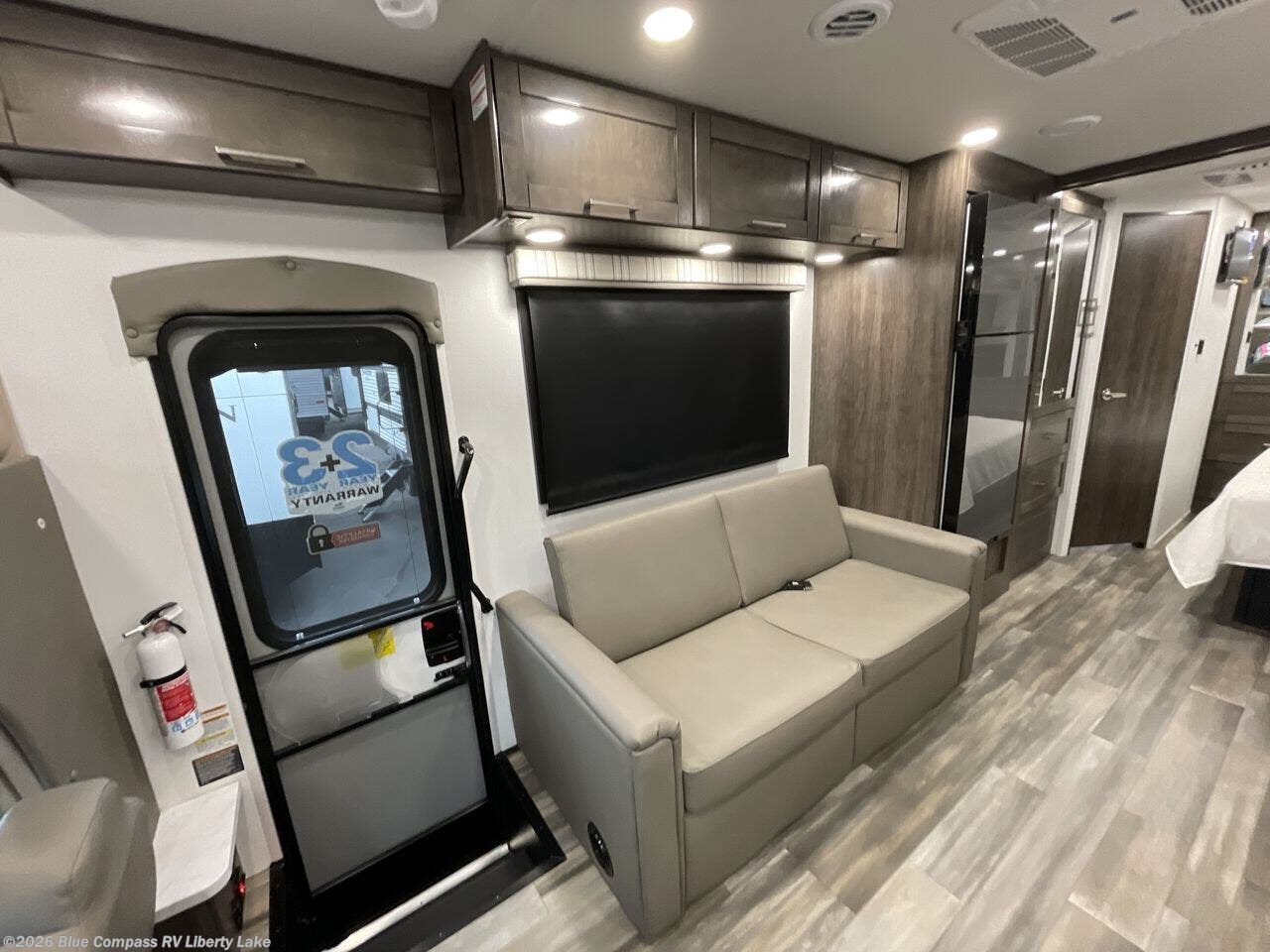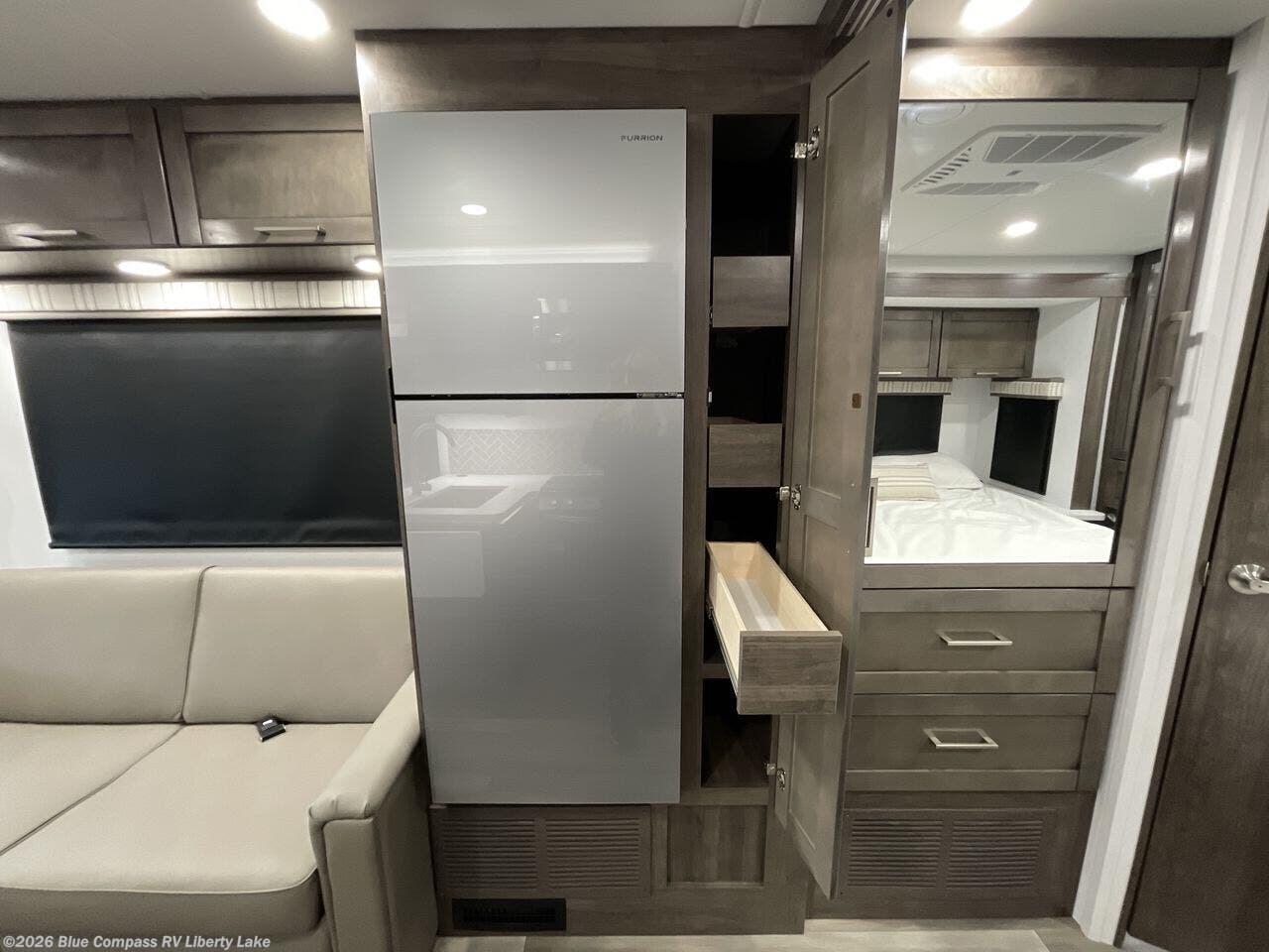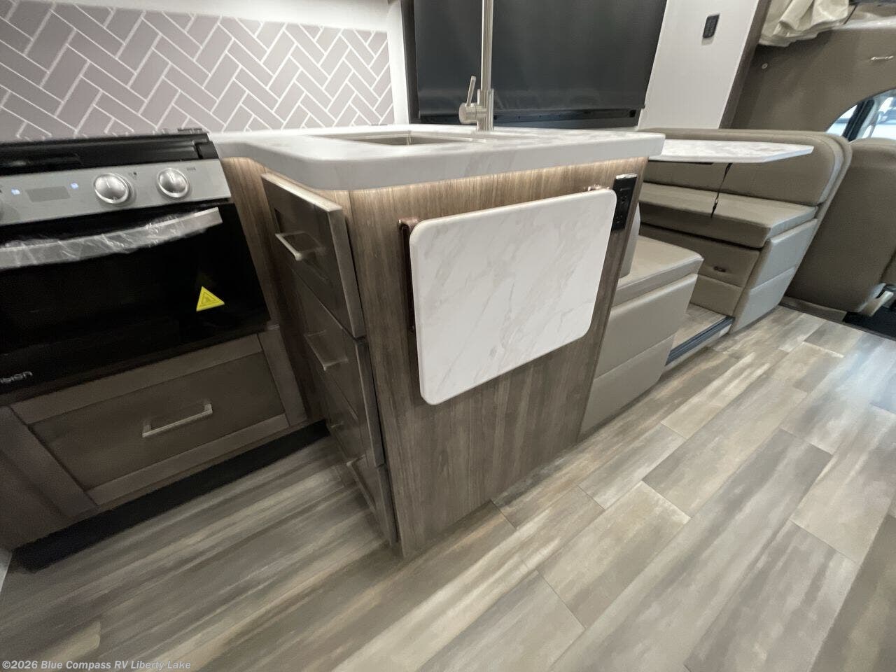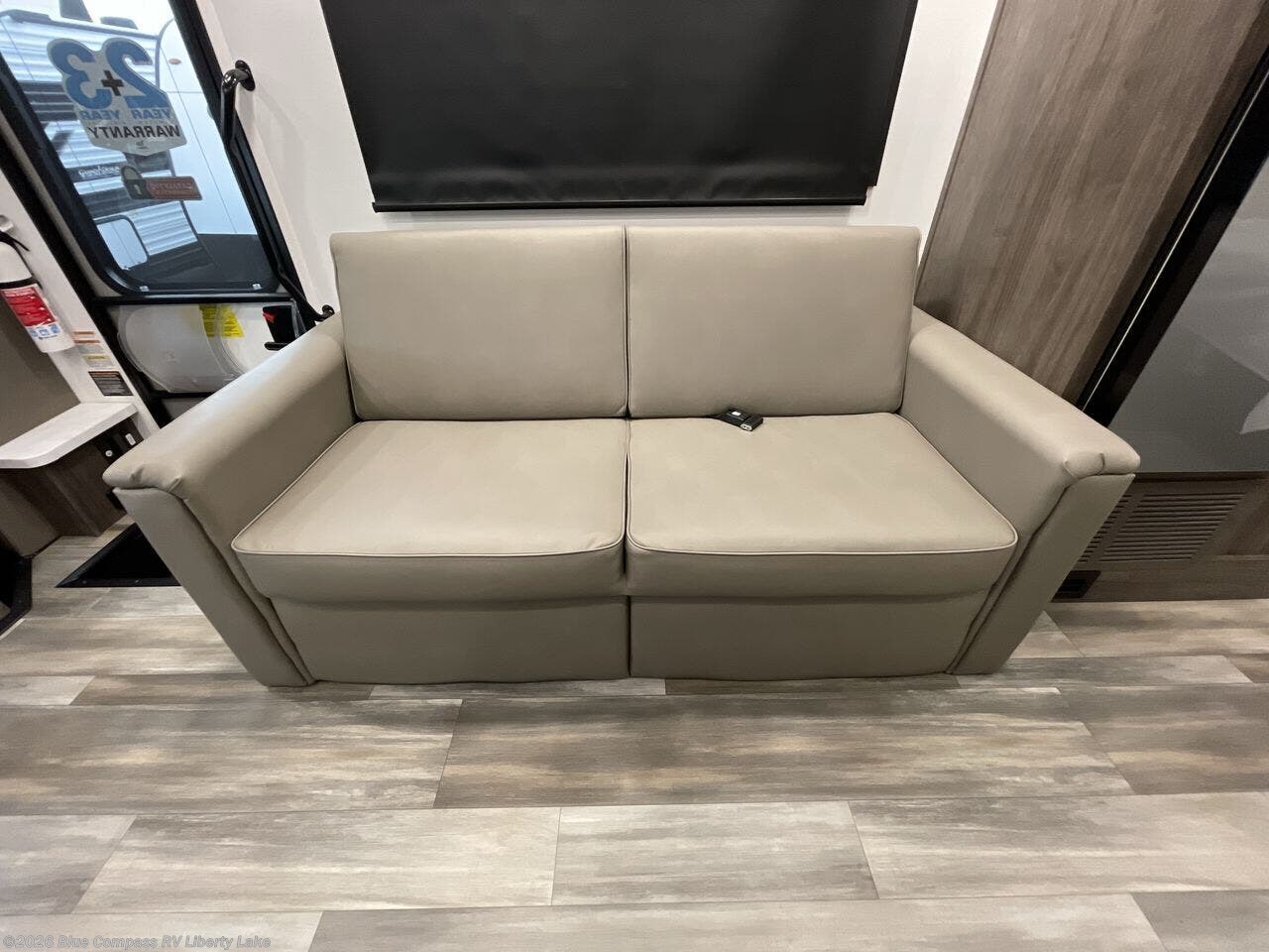 Trips across state lines just got sweeter in this motorhome for five to six. The swivel captain's seats can become a part of the living area once you park, and your guests can get comfortable on the 42" x 70" booth dinette or 68" jackknife sofa. There is a cab-over bunk the kids will love, and the LED HD Smart TV will allow you to enjoy movies. The chef of your group can prepare meals on the Furrion all-in-one cooktop and oven, and leftovers can go in the 10 cu. ft. 12V refrigerator. You will feel right at home in the bedroom suite with its king bed slide out, large wardrobe, and access to the rear corner bathroom. Get started on your getaway today in this cozy Class C motorhome!