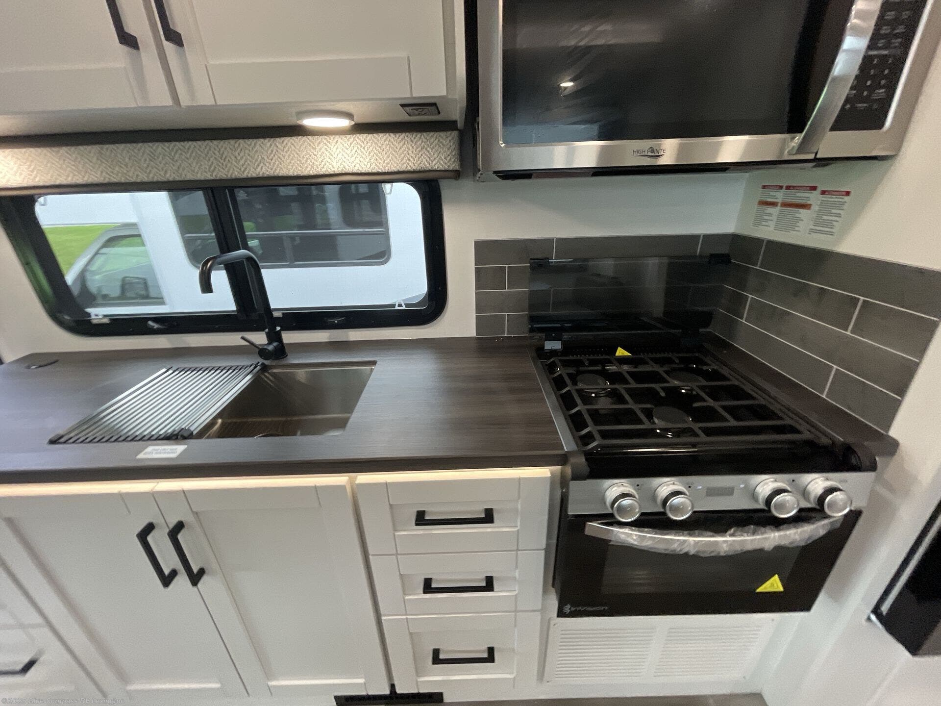 This motorhome includes double slides so you can enjoy more interior space, just like at home! The 42" x 70" booth dinette and 60" tri-fold sofa are in great view of the LED HD Smart TV, and your guests can sleep here, as well as on the cab-over bunk. This Greyhawk kitchen includes a Furrion all-in-one cooktop and oven, a residential-size microwave, and a pantry to store dry goods. You will find a convenient 30" x 36" shower, with the private toilet and sink across the hall so two people can freshen up at once. And don't overlook the rear bedroom with its queen bed slide out, dual bedroom wardrobes, and cabinet!