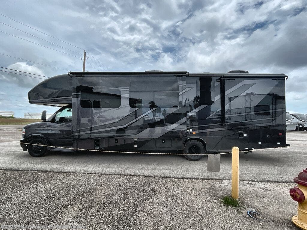 With any Greyhawk Class C gas motorhome by Jayco you will experience smooth sailing thanks to the JRIDE PLUS that comes with Koni shock absorbers, a computer-balanced driveshaft, Hellwig helper springs, and more. The Ford E-450 chassis with a 7.3L V8 325 HP engine will power your excursions, and you'll appreciate the added safety features for your peace of mind. Each model features a Sony infotainment center with Apple CarPlay and Android Auto, backup and side-view cameras, and a tire pressure monitor system the driver is sure to appreciate. Durable construction begins with Stronghold VBL roof, floor and sidewalls, bead-foam insulation, and a one-piece seamless fiberglass front cap. Head inside to find blackout night roller shades, LED-lit pressed countertops, an 84" interior ceiling height, and hardwood cabinet doors and drawers.