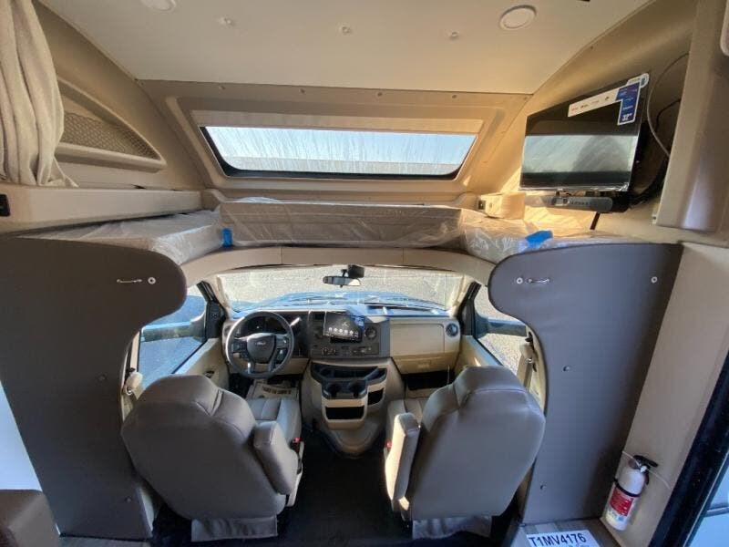With any Greyhawk Class C gas motorhome by Jayco you will experience smooth sailing thanks to the JRIDE PLUS that comes with Koni shock absorbers, a computer-balanced driveshaft, Hellwig helper springs, and more. The Ford E-450 chassis with a 7.3L V8 325 HP engine will power your excursions, and you'll appreciate the added safety features for your peace of mind. Each model features a Sony infotainment center with Apple CarPlay and Android Auto, backup and side-view cameras, and a tire pressure monitor system the driver is sure to appreciate. Durable construction begins with Stronghold VBL roof, floor and sidewalls, bead-foam insulation, and a one-piece seamless fiberglass front cap. Head inside to find blackout night roller shades, LED-lit pressed countertops, an 84" interior ceiling height, and hardwood cabinet doors and drawers.