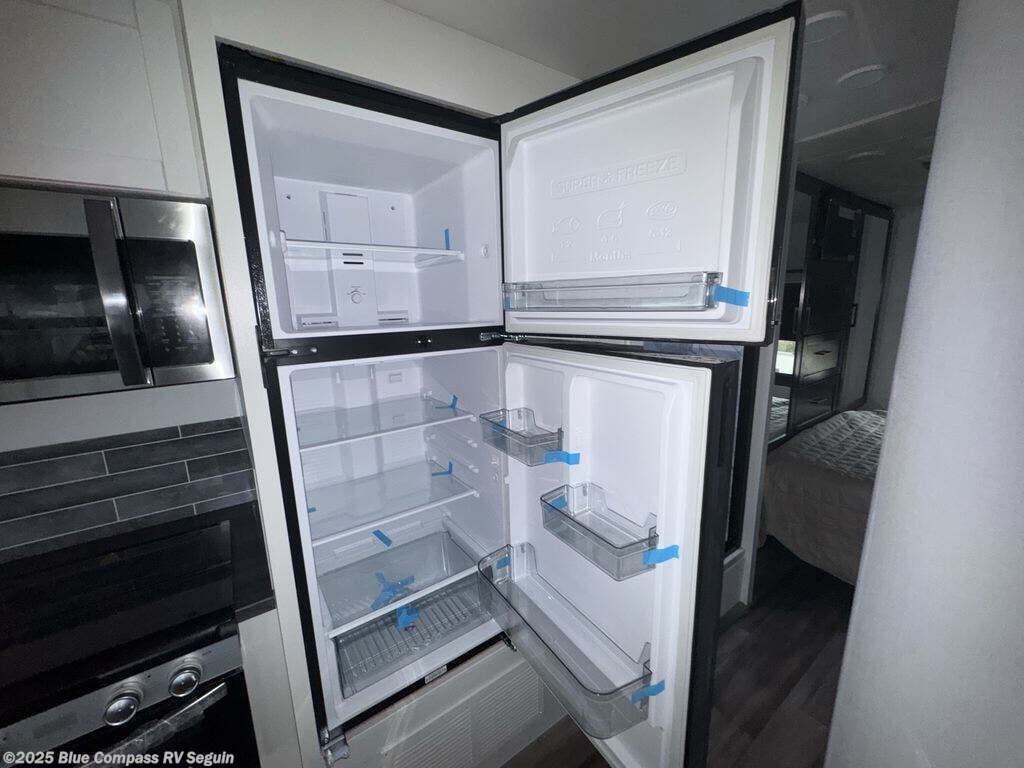 This motorhome includes double slides so you can enjoy more interior space, just like at home! The 42" x 70" booth dinette and 60" tri-fold sofa are in great view of the LED HD Smart TV, and your guests can sleep here, as well as on the cab-over bunk. This Greyhawk kitchen includes a Furrion all-in-one cooktop and oven, a residential-size microwave, and a pantry to store dry goods. You will find a convenient 30" x 36" shower, with the private toilet and sink across the hall so two people can freshen up at once. And don't overlook the rear bedroom with its queen bed slide out, dual bedroom wardrobes, and cabinet!