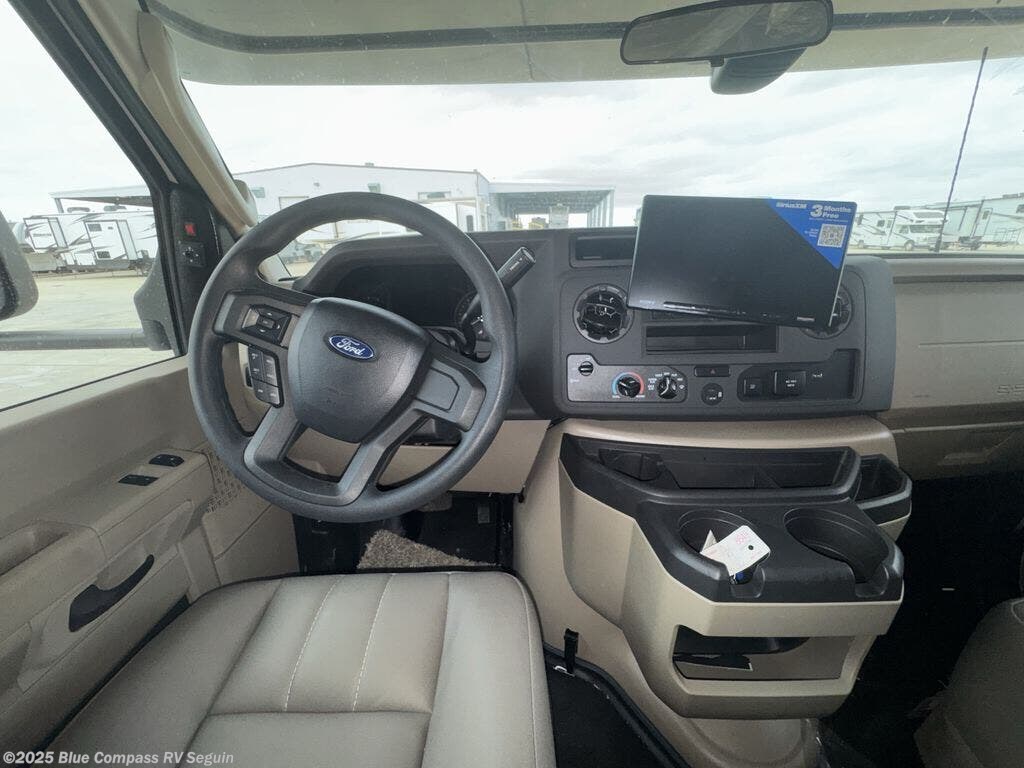 With any Greyhawk Class C gas motorhome by Jayco you will experience smooth sailing thanks to the JRIDE PLUS that comes with Koni shock absorbers, a computer-balanced driveshaft, Hellwig helper springs, and more. The Ford E-450 chassis with a 7.3L V8 325 HP engine will power your excursions, and you'll appreciate the added safety features for your peace of mind. Each model features a Sony infotainment center with Apple CarPlay and Android Auto, backup and side-view cameras, and a tire pressure monitor system the driver is sure to appreciate. Durable construction begins with Stronghold VBL roof, floor and sidewalls, bead-foam insulation, and a one-piece seamless fiberglass front cap. Head inside to find blackout night roller shades, LED-lit pressed countertops, an 84" interior ceiling height, and hardwood cabinet doors and drawers.