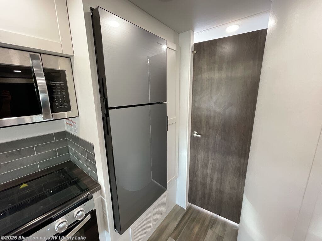 This motorhome includes double slides so you can enjoy more interior space, just like at home! The 42" x 70" booth dinette and 60" tri-fold sofa are in great view of the LED HD Smart TV, and your guests can sleep here, as well as on the cab-over bunk. This Greyhawk kitchen includes a Furrion all-in-one cooktop and oven, a residential-size microwave, and a pantry to store dry goods. You will find a convenient 30" x 36" shower, with the private toilet and sink across the hall so two people can freshen up at once. And don't overlook the rear bedroom with its queen bed slide out, dual bedroom wardrobes, and cabinet!