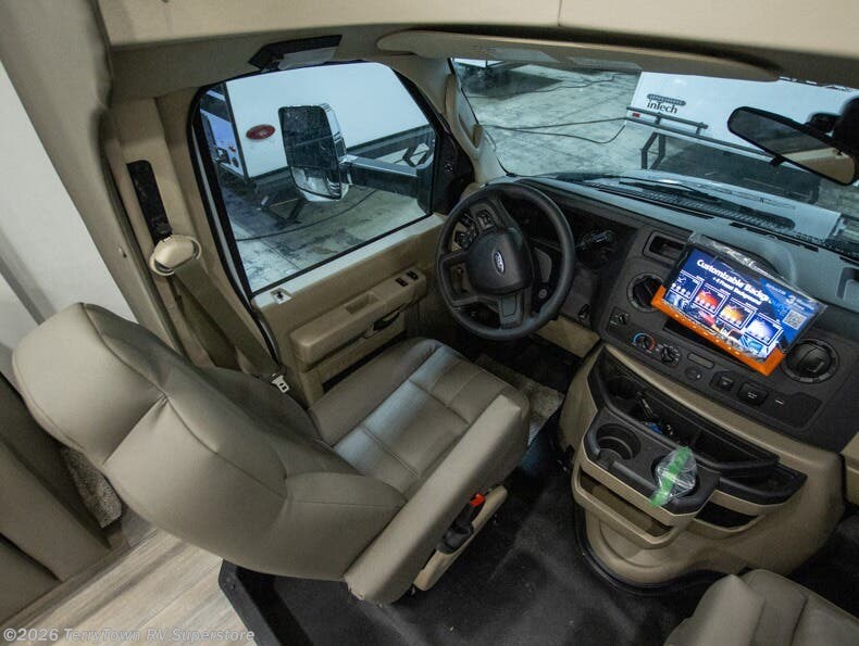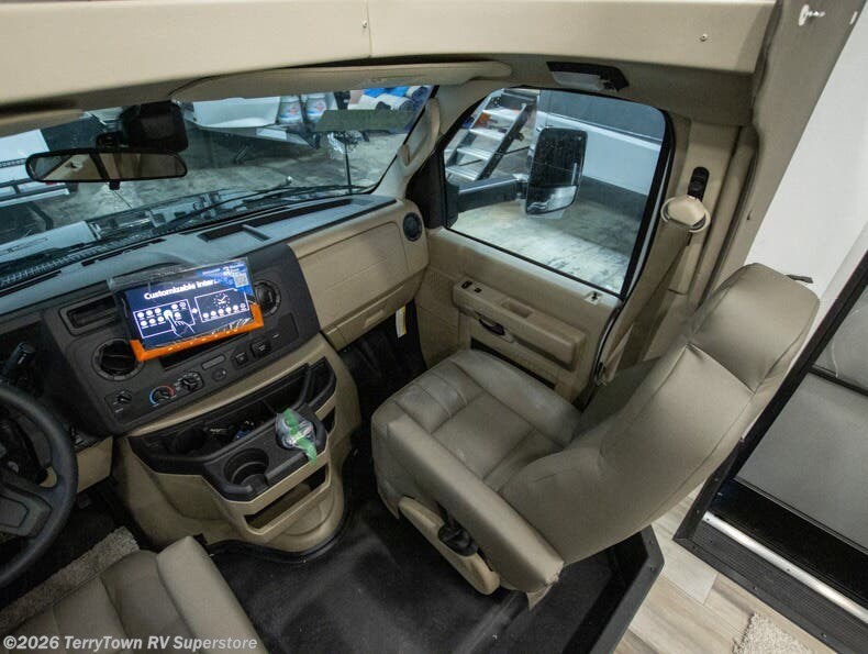 With any Greyhawk Class C gas motorhome by Jayco you will experience smooth sailing thanks to the JRIDE PLUS that comes with Koni shock absorbers, a computer-balanced driveshaft, Hellwig helper springs, and more. The Ford E-450 chassis with a 7.3L V8 325 HP engine will power your excursions, and you'll appreciate the added safety features for your peace of mind. Each model features a Sony infotainment center with Apple CarPlay and Android Auto, backup and side-view cameras, and a tire pressure monitor system the driver is sure to appreciate. Durable construction begins with Stronghold VBL roof, floor and sidewalls, bead-foam insulation, and a one-piece seamless fiberglass front cap. Head inside to find blackout night roller shades, LED-lit pressed countertops, an 84" interior ceiling height, and hardwood cabinet doors and drawers.