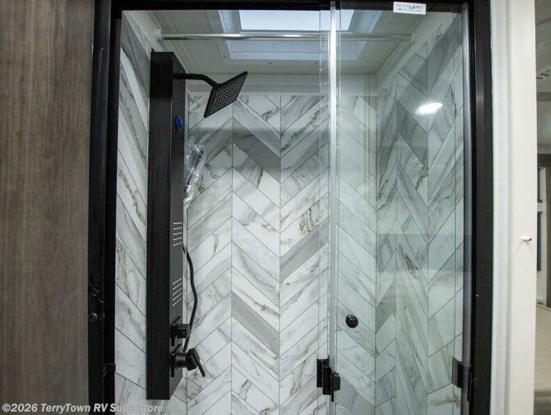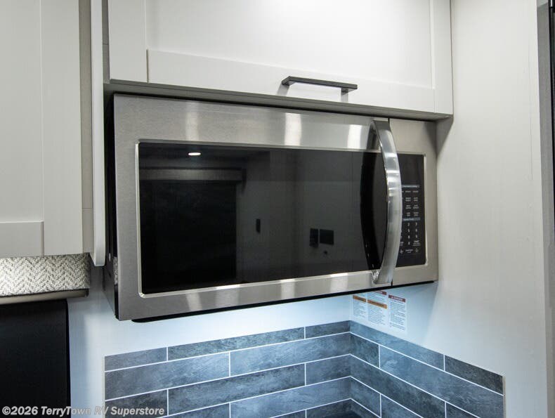 This motorhome includes double slides so you can enjoy more interior space, just like at home! The 42" x 70" booth dinette and 60" tri-fold sofa are in great view of the LED HD Smart TV, and your guests can sleep here, as well as on the cab-over bunk. This Greyhawk kitchen includes a Furrion all-in-one cooktop and oven, a residential-size microwave, and a pantry to store dry goods. You will find a convenient 30" x 36" shower, with the private toilet and sink across the hall so two people can freshen up at once. And don't overlook the rear bedroom with its queen bed slide out, dual bedroom wardrobes, and cabinet!
