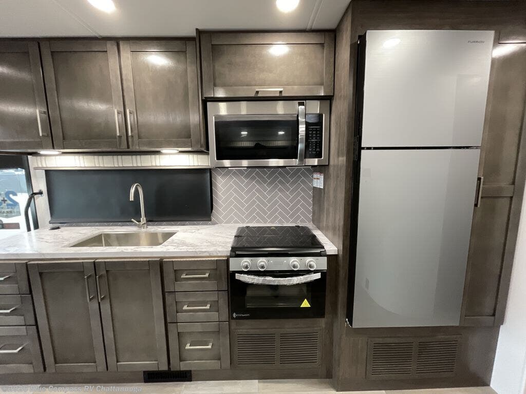 This motorhome includes double slides so you can enjoy more interior space, just like at home! The 42" x 70" booth dinette and 60" tri-fold sofa are in great view of the LED HD Smart TV, and your guests can sleep here, as well as on the cab-over bunk. This Greyhawk kitchen includes a Furrion all-in-one cooktop and oven, a residential-size microwave, and a pantry to store dry goods. You will find a convenient 30" x 36" shower, with the private toilet and sink across the hall so two people can freshen up at once. And don't overlook the rear bedroom with its queen bed slide out, dual bedroom wardrobes, and cabinet!