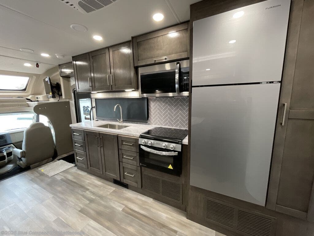 With any Greyhawk Class C gas motorhome by Jayco you will experience smooth sailing thanks to the JRIDE PLUS that comes with Koni shock absorbers, a computer-balanced driveshaft, Hellwig helper springs, and more. The Ford E-450 chassis with a 7.3L V8 325 HP engine will power your excursions, and you'll appreciate the added safety features for your peace of mind. Each model features a Sony infotainment center with Apple CarPlay and Android Auto, backup and side-view cameras, and a tire pressure monitor system the driver is sure to appreciate. Durable construction begins with Stronghold VBL roof, floor and sidewalls, bead-foam insulation, and a one-piece seamless fiberglass front cap. Head inside to find blackout night roller shades, LED-lit pressed countertops, an 84" interior ceiling height, and hardwood cabinet doors and drawers.