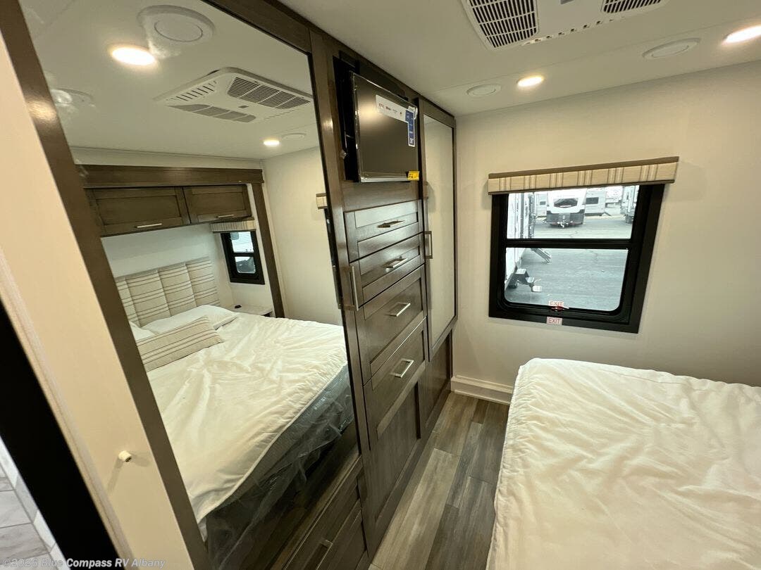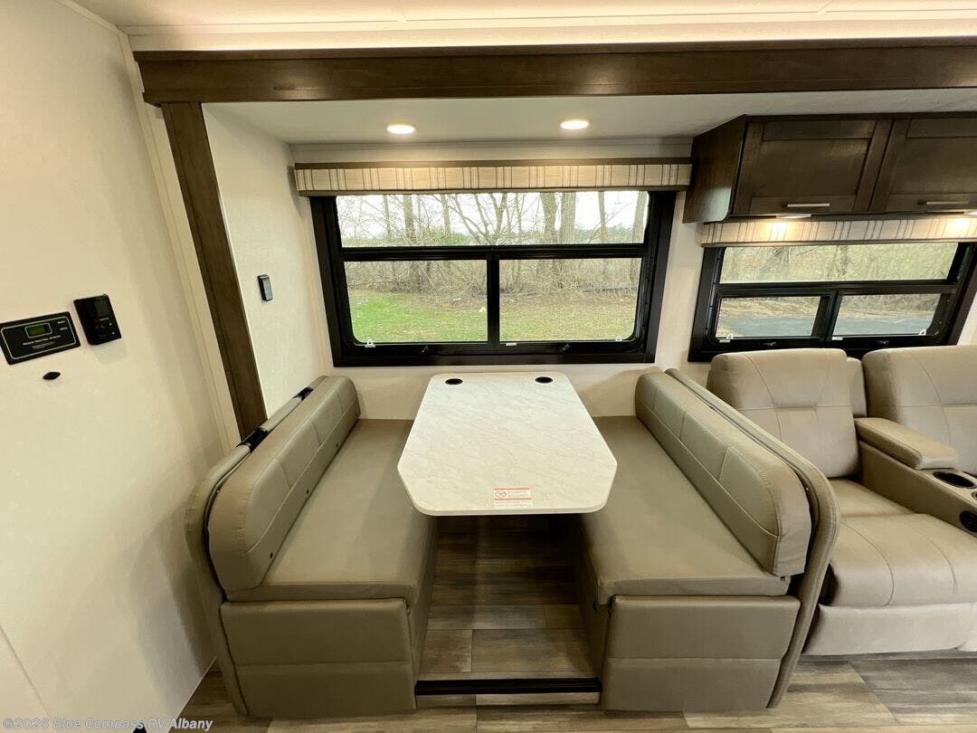 This motorhome includes double slides so you can enjoy more interior space, just like at home! The 42" x 70" booth dinette and 60" tri-fold sofa are in great view of the LED HD Smart TV, and your guests can sleep here, as well as on the cab-over bunk. This Greyhawk kitchen includes a Furrion all-in-one cooktop and oven, a residential-size microwave, and a pantry to store dry goods. You will find a convenient 30" x 36" shower, with the private toilet and sink across the hall so two people can freshen up at once. And don't overlook the rear bedroom with its queen bed slide out, dual bedroom wardrobes, and cabinet!