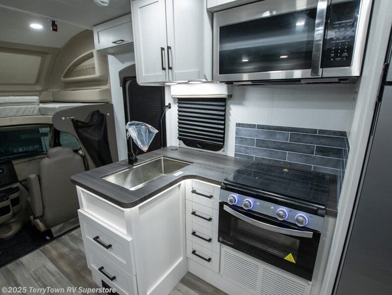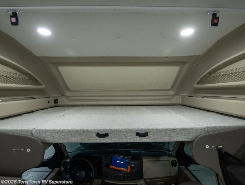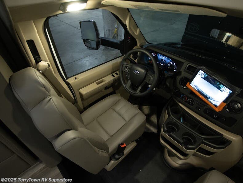 With any Greyhawk Class C gas motorhome by Jayco you will experience smooth sailing thanks to the JRIDE PLUS that comes with Koni shock absorbers, a computer-balanced driveshaft, Hellwig helper springs, and more. The Ford E-450 chassis with a 7.3L V8 325 HP engine will power your excursions, and you'll appreciate the added safety features for your peace of mind. Each model features a Sony infotainment center with Apple CarPlay and Android Auto, backup and side-view cameras, and a tire pressure monitor system the driver is sure to appreciate. Durable construction begins with Stronghold VBL roof, floor and sidewalls, bead-foam insulation, and a one-piece seamless fiberglass front cap. Head inside to find blackout night roller shades, LED-lit pressed countertops, an 84" interior ceiling height, and hardwood cabinet doors and drawers.