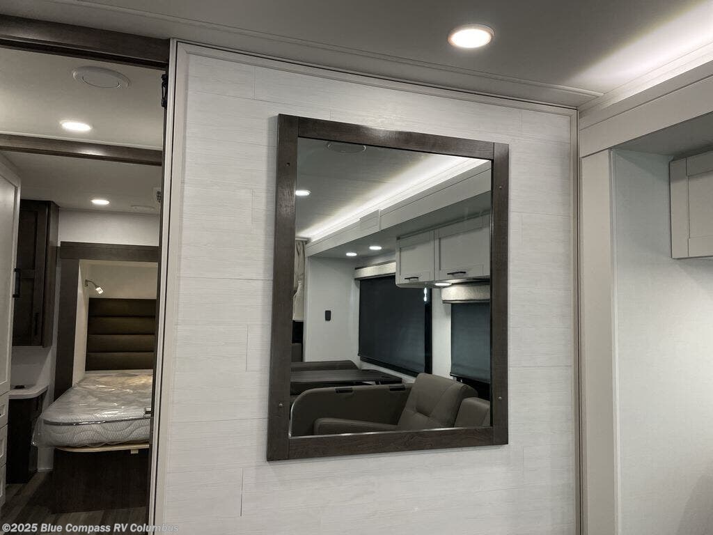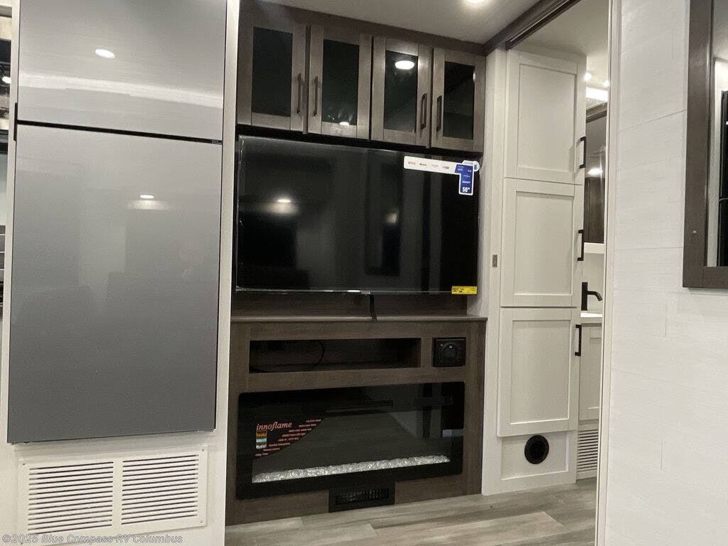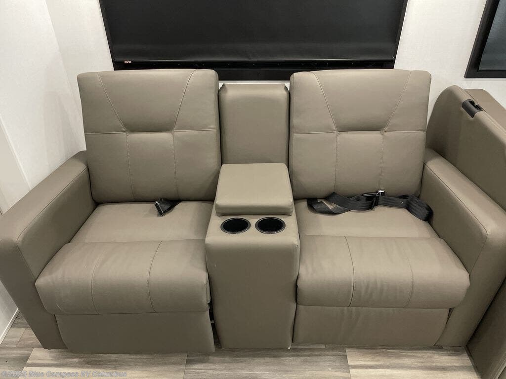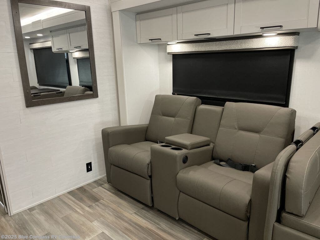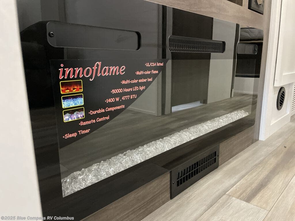 Pack your bags and head to your favorite camping spot in this spacious motorhome for six to seven. The little ones will love the cab-over bunk, and you'll have your own private bedroom in the back. There is also 72" theater seating and a 42" x 70" booth dinette that will serve as seating and sleeping space as well. This model will feel more like home with its fireplace, entertainment center with a 50" TV, and spacious living area. There is also a private toilet and shower, with the sink across the hall for convenience.