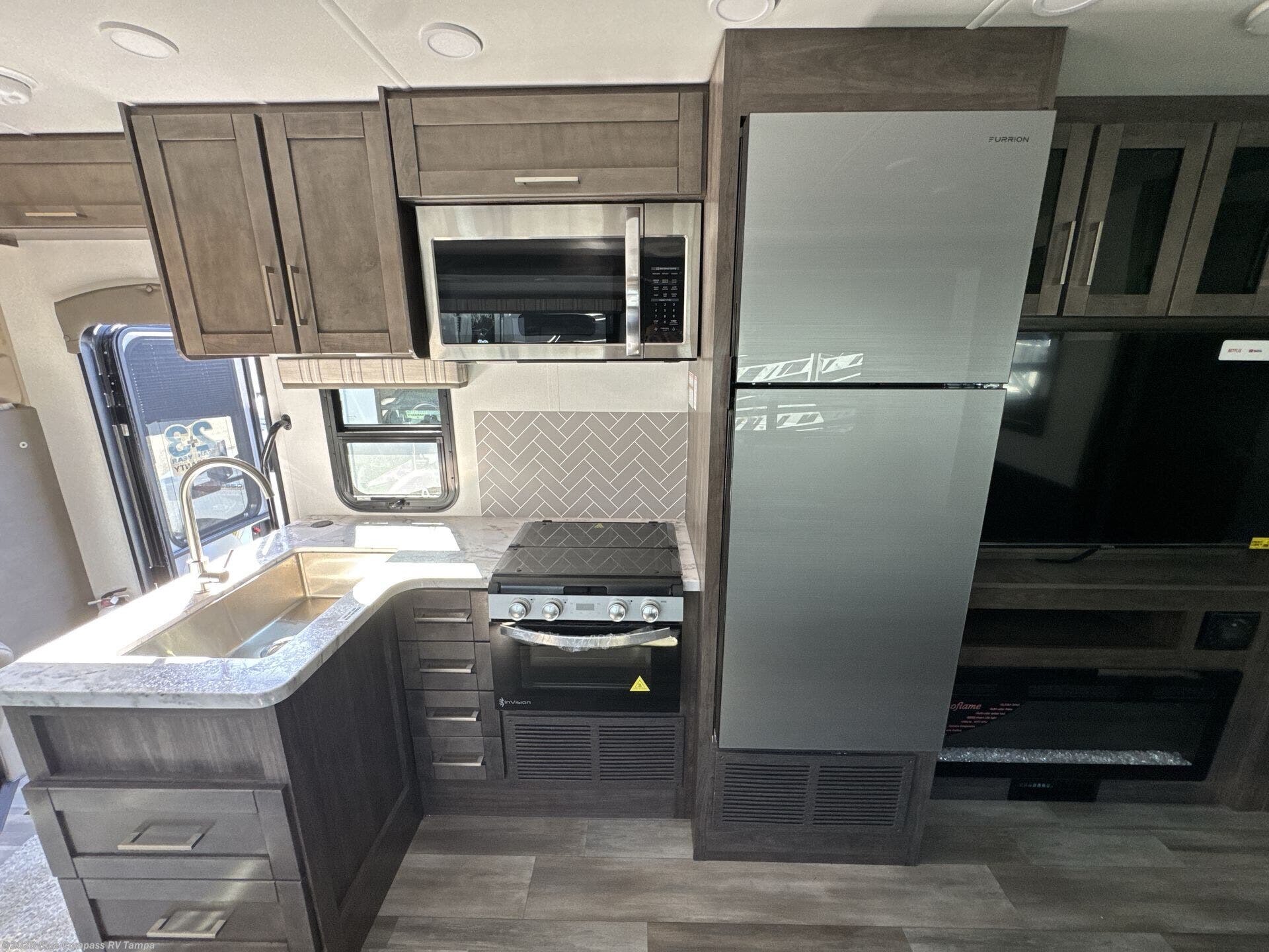 With any Greyhawk Class C gas motorhome by Jayco you will experience smooth sailing thanks to the JRIDE PLUS that comes with Koni shock absorbers, a computer-balanced driveshaft, Hellwig helper springs, and more. The Ford E-450 chassis with a 7.3L V8 325 HP engine will power your excursions, and you'll appreciate the added safety features for your peace of mind. Each model features a Sony infotainment center with Apple CarPlay and Android Auto, backup and side-view cameras, and a tire pressure monitor system the driver is sure to appreciate. Durable construction begins with Stronghold VBL roof, floor and sidewalls, bead-foam insulation, and a one-piece seamless fiberglass front cap. Head inside to find blackout night roller shades, LED-lit pressed countertops, an 84" interior ceiling height, and hardwood cabinet doors and drawers.
