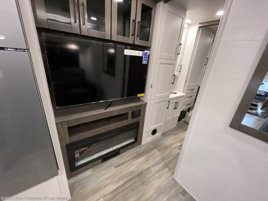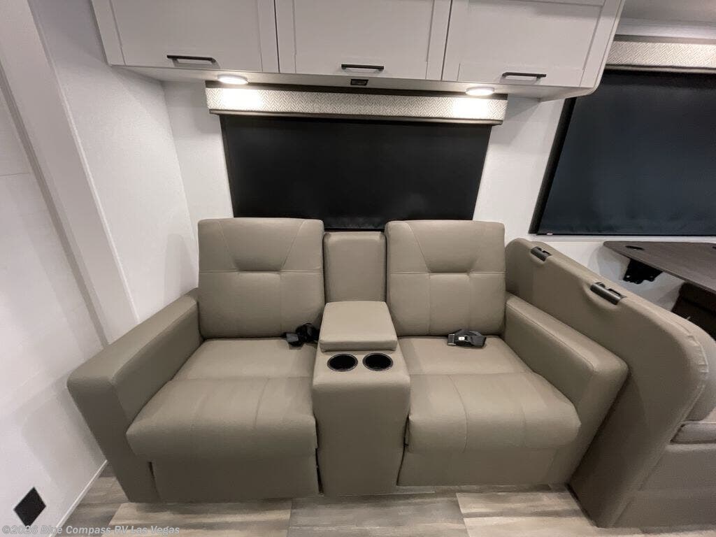 Pack your bags and head to your favorite camping spot in this spacious motorhome for six to seven. The little ones will love the cab-over bunk, and you'll have your own private bedroom in the back. There is also 72" theater seating and a 42" x 70" booth dinette that will serve as seating and sleeping space as well. This model will feel more like home with its fireplace, entertainment center with a 50" TV, and spacious living area. There is also a private toilet and shower, with the sink across the hall for convenience.