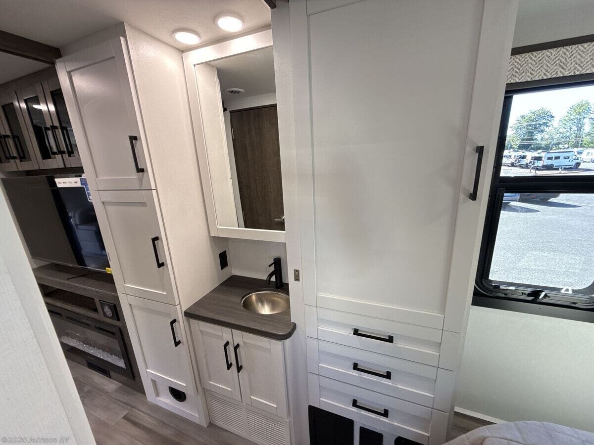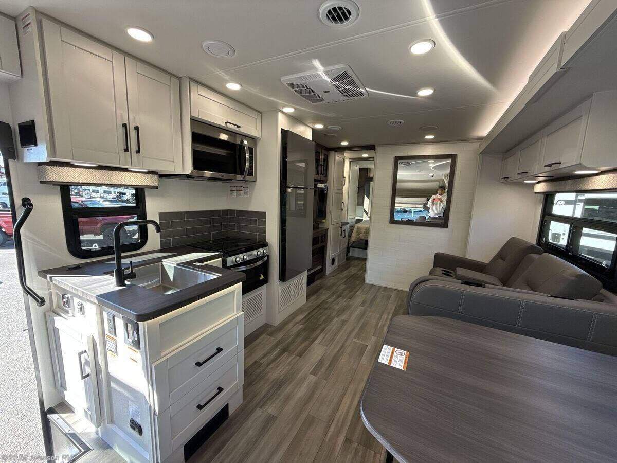 Features Include: 7.3L V8 Gas Engine, 210-Amp Alternator, Traction Control, Hill Start Assist, JRide Plus System, Koni FSD Shocks, 7500# Hitch 7-Pin, Cab Features, Swivel Cab Seats, Tilt Steering Wheel, Power Entry Steps, Car Seat Tethers, Systems Center, Satellite Dish Prep, JBL Audio System, 300# Rated Bunkbeds, Glass Shower Door, Foot Flush Toilet, 12v House Batteries, 16.5-Gal 56# LP Tank, 30-Amp Service Cord, 60-Amp Converter, 1000w Inverter, 15k AC Heat Pump, 12v Demand Pump, Winterization System, Black Tank Flush, Bead Foam Insulation, Slideout Awnings