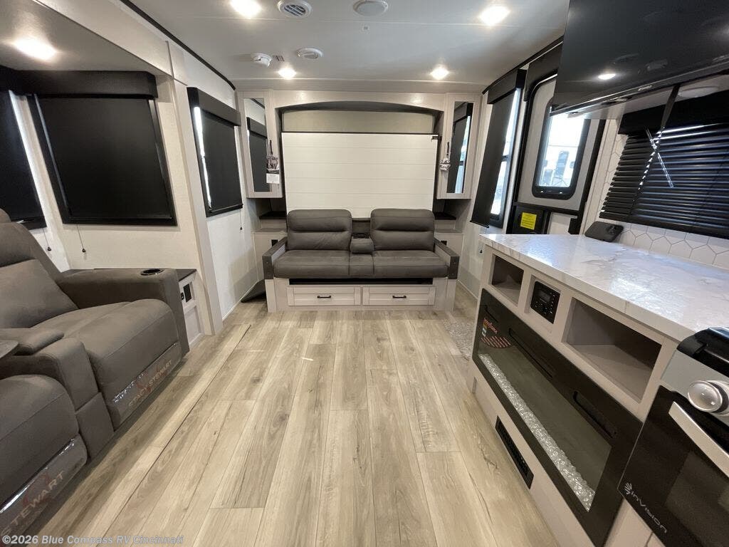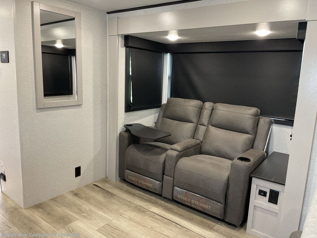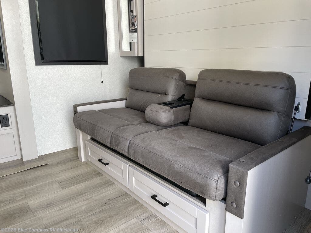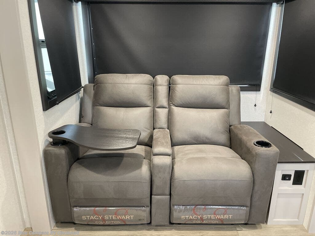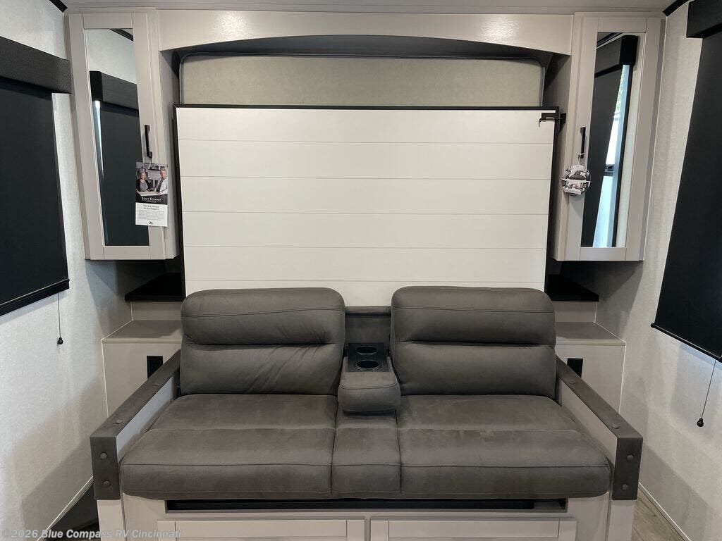 This travel trailer offers a lot of possibilities! During the day, relax in the spacious front living area with a jackknife sofa plus a pair of theater seats, both positioned for a great view of the entertainment center. A fully equipped kitchen with stainless steel double bowl sink, microwave, and three-burner range makes meals easy, and the theater seats have swing-out trays for you to dine. At night, pull down the 60" x 75" Murphy bed for a great night's sleep! wardrobes on either side of the bed provide plenty of storage for your clothing. The rear corner bath is convenient and private, and offers a linen closet plus a medicine cabinet for additional storage capability. Outside you will be sheltered from the sun beneath the 15' awning, and there is an LP Quick Connect if you want to hook up your personal grill.