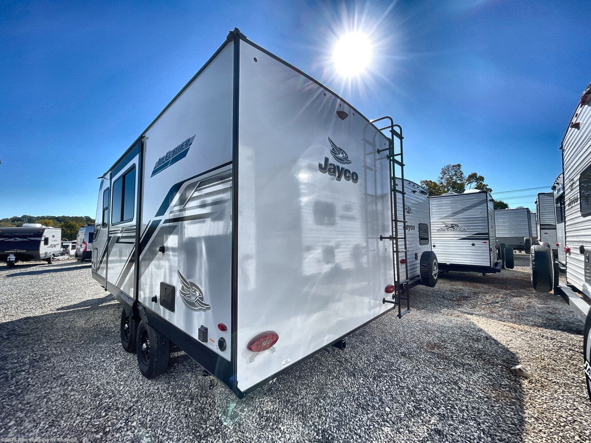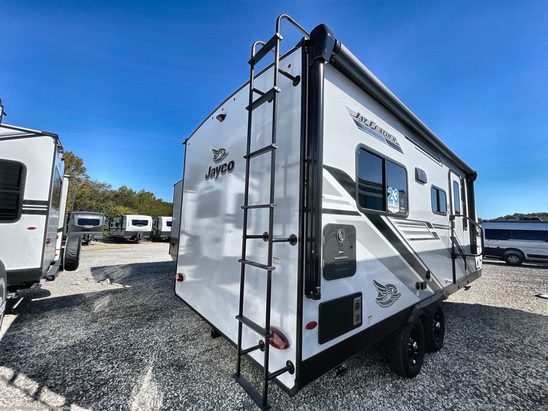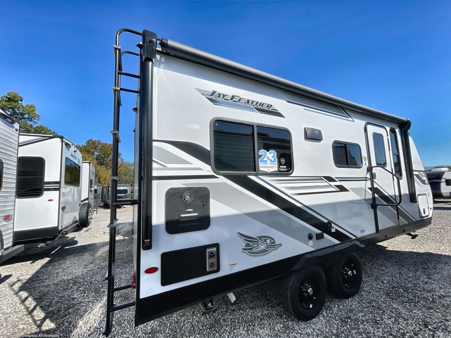 With any Jay Feather travel trailer by Jayco, you will enjoy lightweight towing, convenient exterior amenities, and at-home comforts inside! The Overlander 1 Solar Package included within the Jay Sport Package comes with a 200W solar panel and a 30-amp digital controller so you can enjoy some off-grid camping. There is also a modern graphics package, Solid fold-down step with aluminum tread steps on the main entry doorstep, and Climate Shield 0 -100° F tested weather insulation package that will allow you to camp in various types of climates. The Customer Value Package will make time outdoors easier than ever with a power tongue jack and Automotive-style aluminum rims, plus radial tires with self-adjusting electric brakes. More exterior features include a Keyed-Alike doors, a Magnum Truss roof system, and the list goes on! And we haven't even touched on the interior comforts, like the seamless countertops and Residential vinyl flooring throughout, decorative kitchen backsplash, handcrafted hardwood door/drawer fronts, and multiple USB charging ports to keep you going!