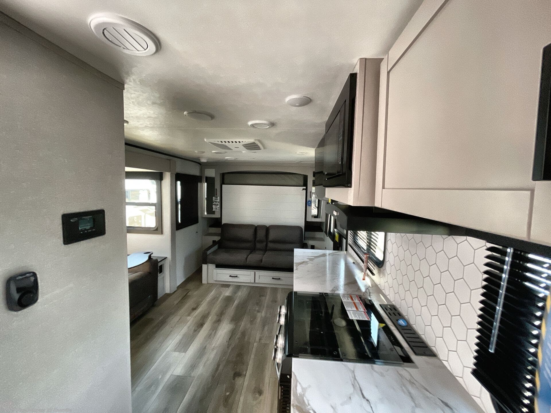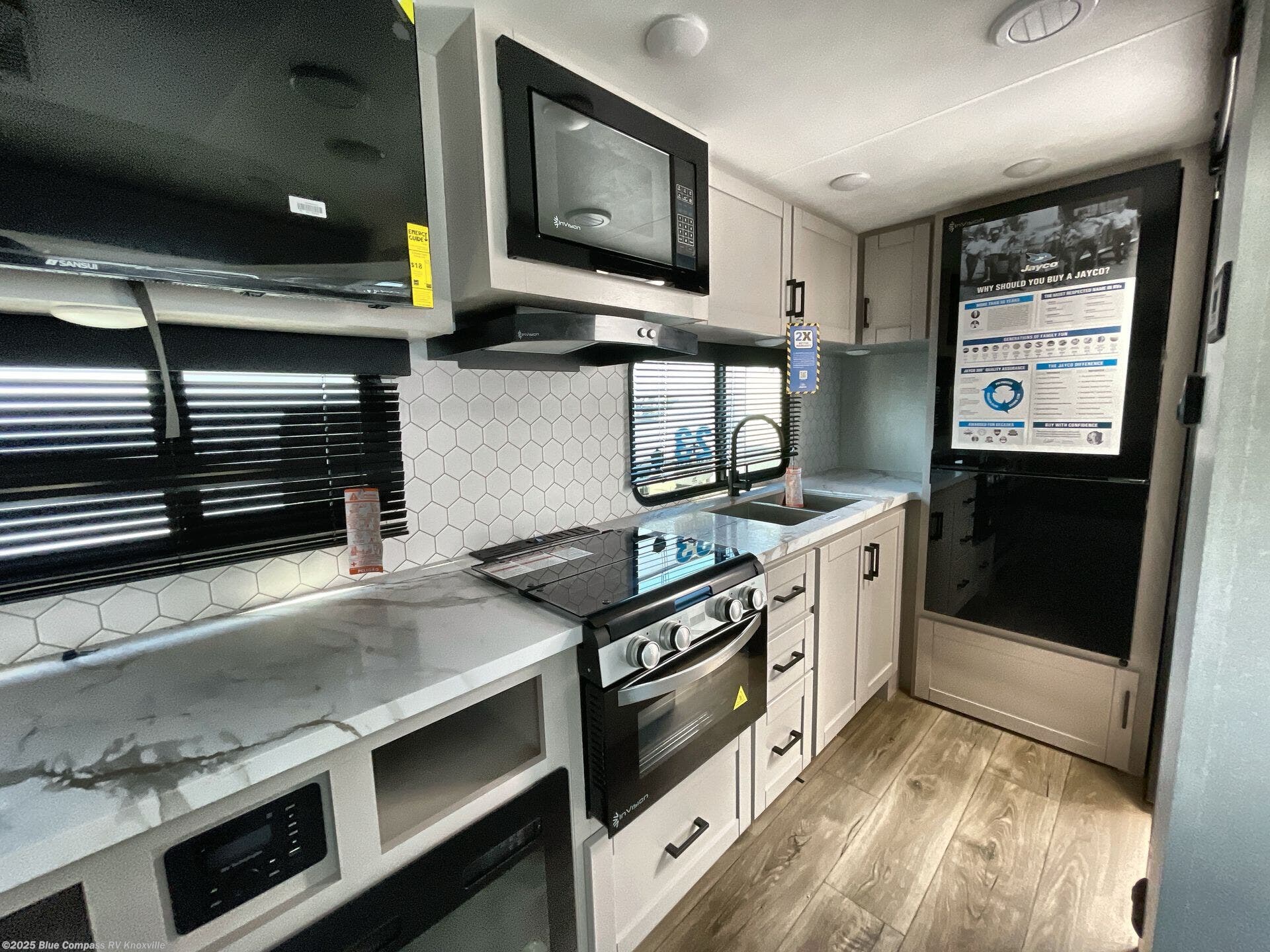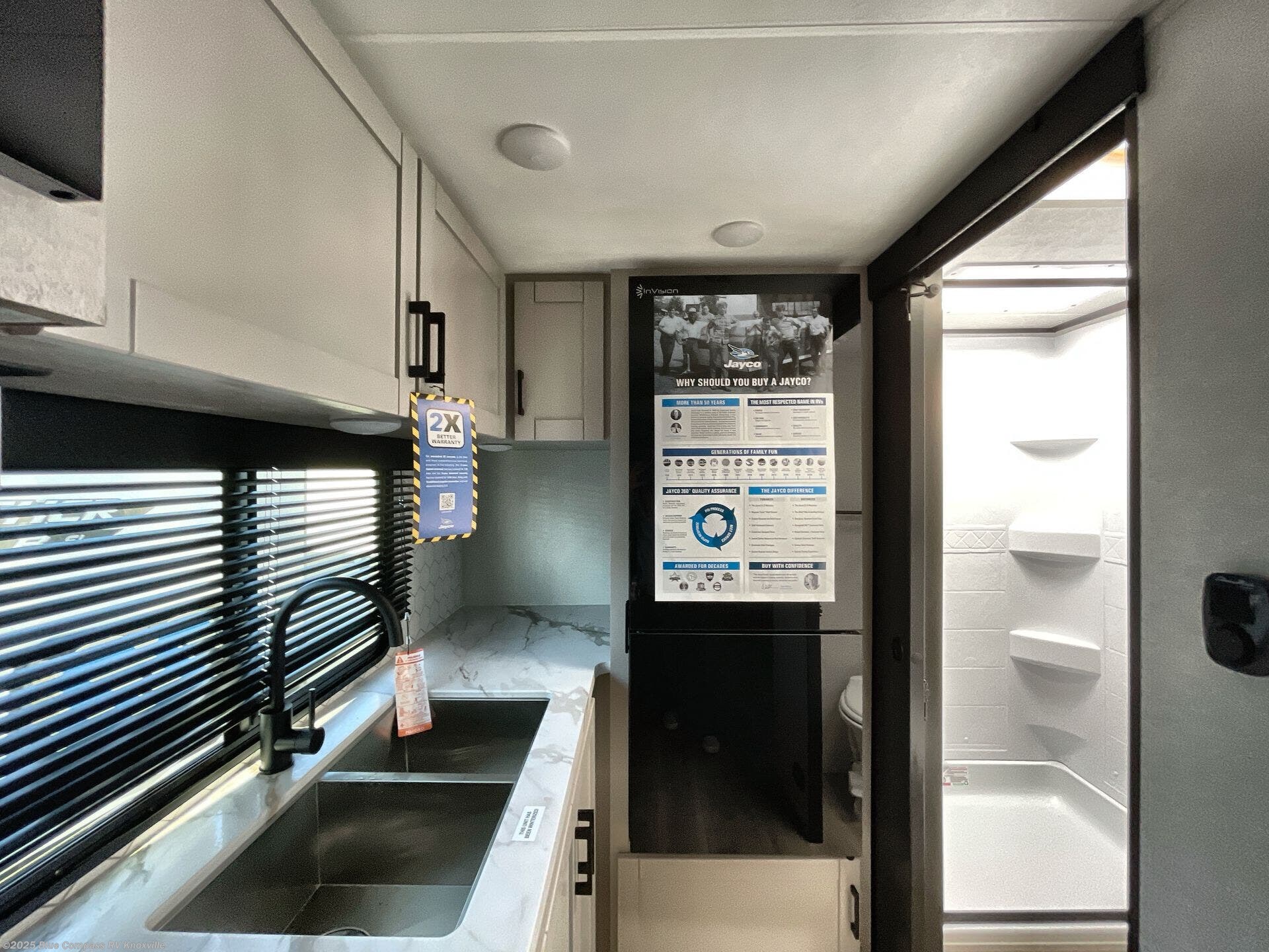 With any Jay Feather travel trailer by Jayco, you will enjoy lightweight towing, convenient exterior amenities, and at-home comforts inside! The Overlander 1 Solar Package included within the Jay Sport Package comes with a 200W solar panel and a 30-amp digital controller so you can enjoy some off-grid camping. There is also a modern graphics package, Solid fold-down step with aluminum tread steps on the main entry doorstep, and Climate Shield 0 -100° F tested weather insulation package that will allow you to camp in various types of climates. The Customer Value Package will make time outdoors easier than ever with a power tongue jack and Automotive-style aluminum rims, plus radial tires with self-adjusting electric brakes. More exterior features include a Keyed-Alike doors, a Magnum Truss roof system, and the list goes on! And we haven't even touched on the interior comforts, like the seamless countertops and Residential vinyl flooring throughout, decorative kitchen backsplash, handcrafted hardwood door/drawer fronts, and multiple USB charging ports to keep you going!