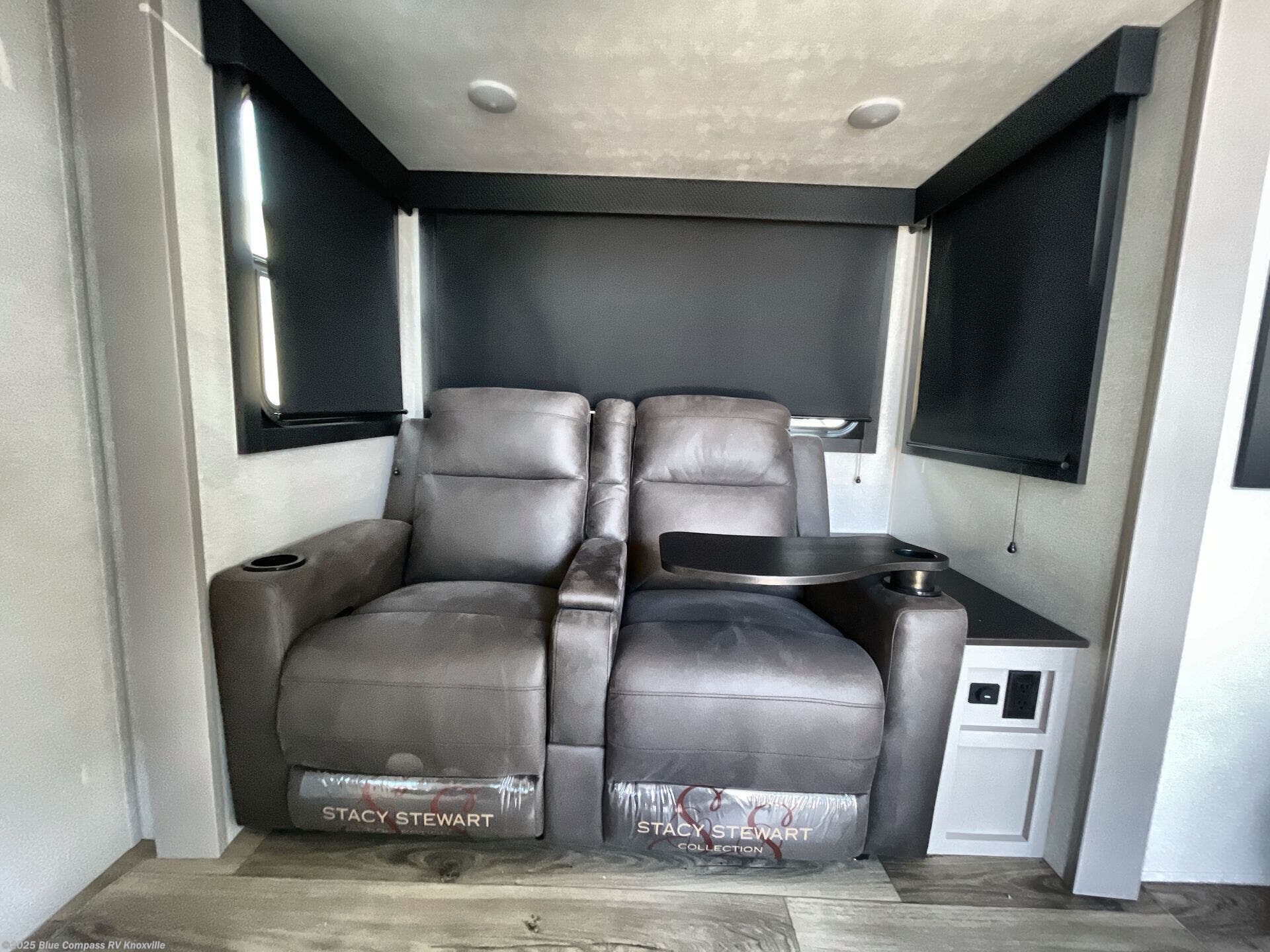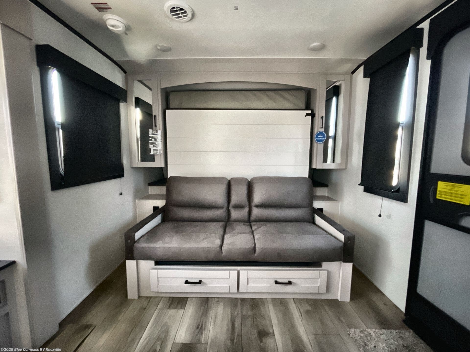 This travel trailer offers a lot of possibilities! During the day, relax in the spacious front living area with a jackknife sofa plus a pair of theater seats, both positioned for a great view of the entertainment center. A fully equipped kitchen with stainless steel sink, microwave, and three-burner range makes meals easy, and the theater seats have swing-out trays for you to dine. At night, pull down the Murphy bed for a great night's sleep! wardrobes on either side of the bed provide plenty of storage for your clothing. The rear corner bath is convenient and private,and offers a linen closet plus a medicine cabinet for additional storage capability. Outside you will be sheltered from the sun beneath the 15' awning, and there is an LP Quick Connect if you want to hook up your personal grill.