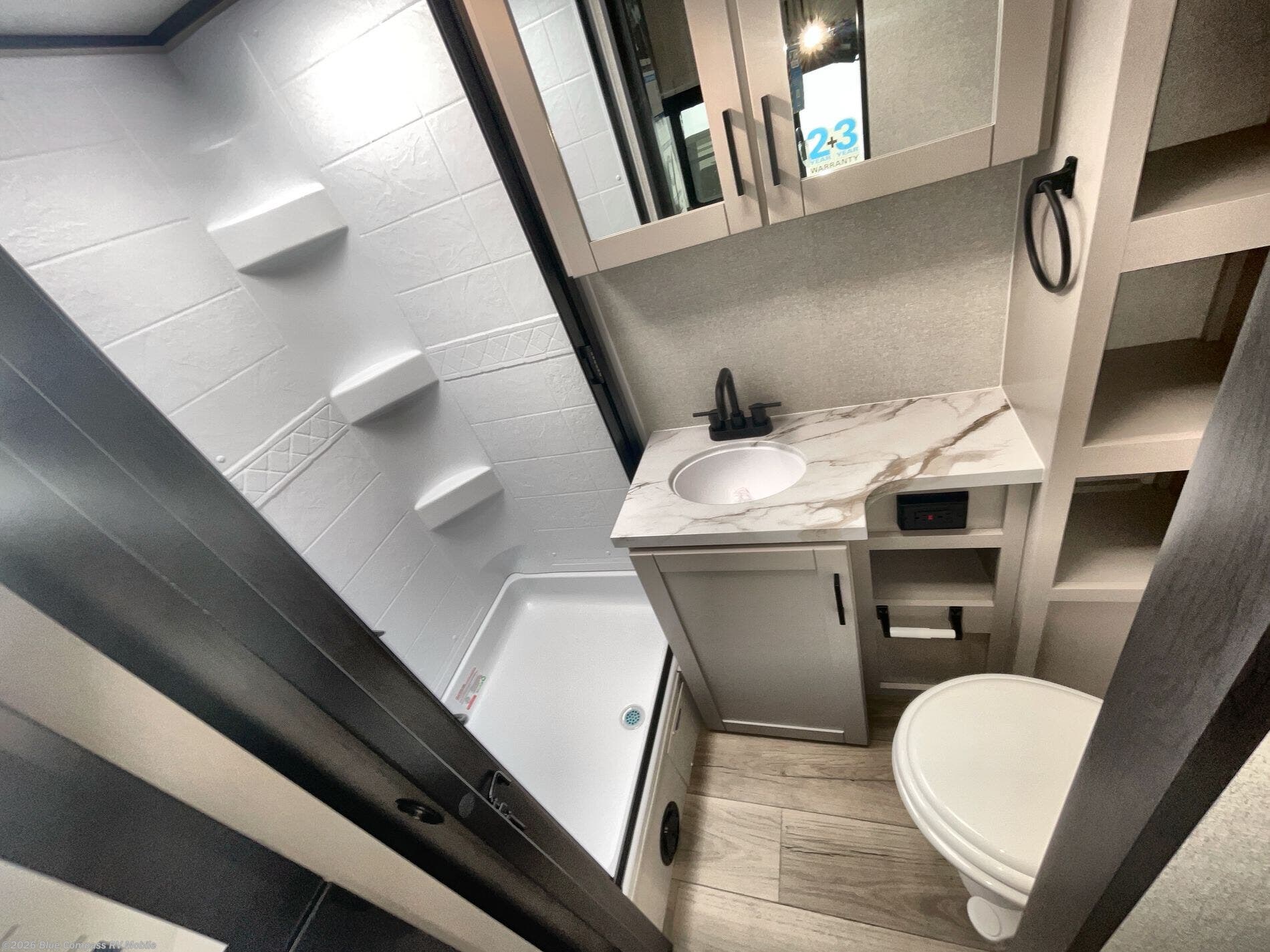 With any Jay Feather travel trailer by Jayco, you will enjoy lightweight towing, convenient exterior amenities, and at-home comforts inside! The Overlander 1 Solar Package included within the Jay Sport Package comes with a 200W solar panel and a 30-amp digital controller so you can enjoy some off-grid camping. There is also a modern graphics package, Solid fold-down step with aluminum tread steps on the main entry doorstep, and Climate Shield 0 -100° F tested weather insulation package that will allow you to camp in various types of climates. The Customer Value Package will make time outdoors easier than ever with a power tongue jack and Automotive-style aluminum rims, plus radial tires with self-adjusting electric brakes. More exterior features include a Keyed-Alike doors, a Magnum Truss roof system, and the list goes on! And we haven't even touched on the interior comforts, like the seamless countertops and Residential vinyl flooring throughout, decorative kitchen backsplash, handcrafted hardwood door/drawer fronts, and multiple USB charging ports to keep you going!