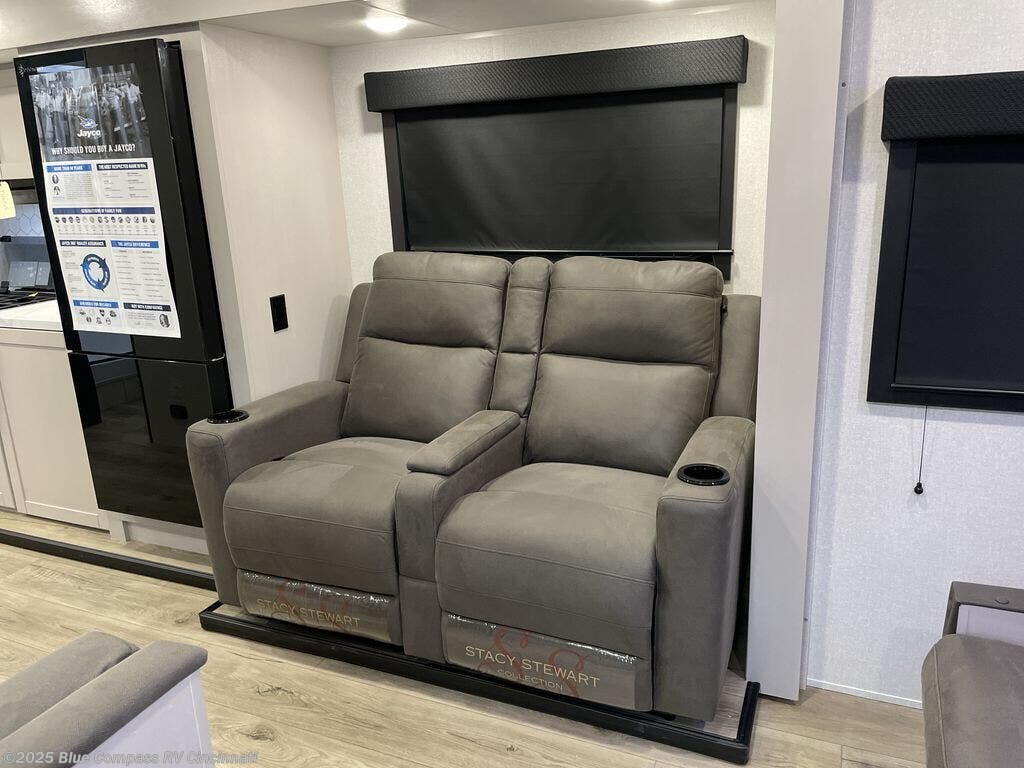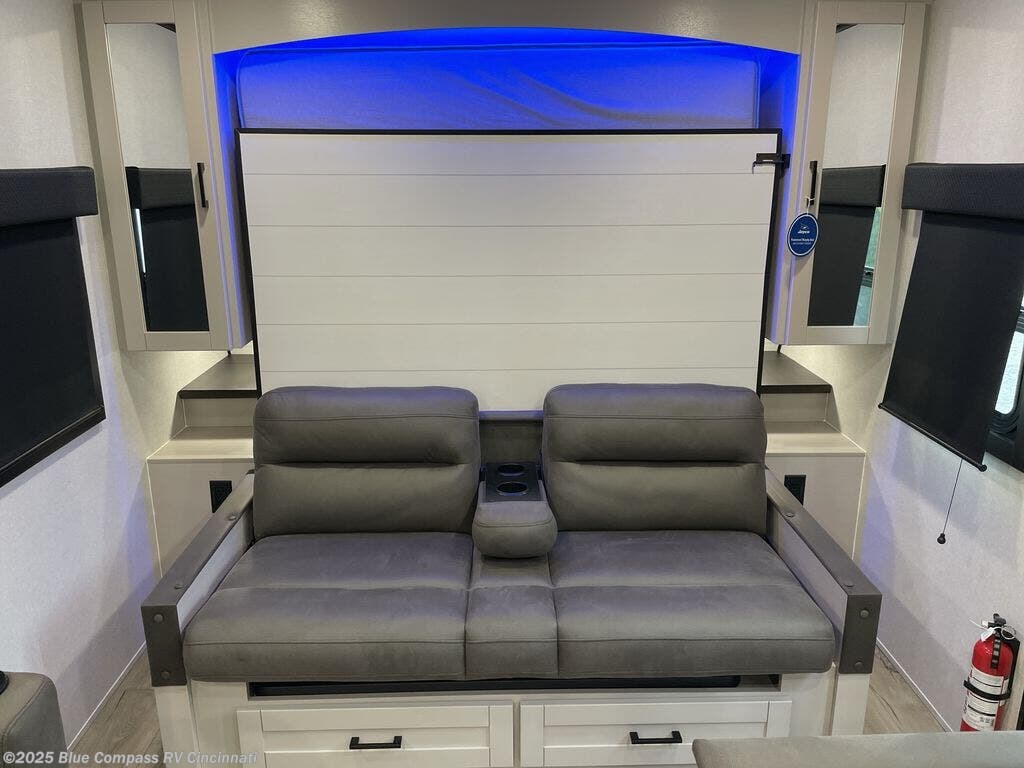 If you wish to escape the hustle and bustle of everyday life then you need this travel trailer! It features a front 60" x 75" Murphy bed with wardrobes on either side for bedtime and a jackknife sofa during the day. You can play games at the booth dinette after enjoying a delicious meal prepared with the three burner cooktop or relax at the theater seating with table trays and enjoy the LED TV. The rear corner bathroom has a shower with a skylight for you to get cleaned up in, as well as a linen closet to store your towels. There is exterior storage space to keep your outdoor gear, a 15' power awning to protect you from the elements.