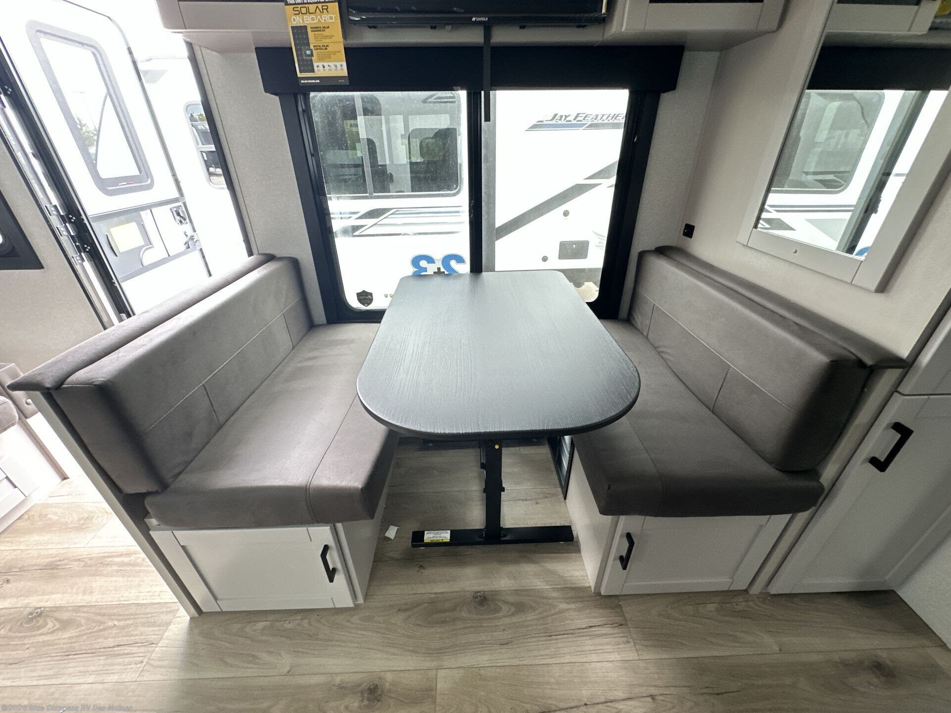 With any Jay Feather travel trailer by Jayco, you will enjoy lightweight towing, convenient exterior amenities, and at-home comforts inside! The Overlander 1 Solar Package included within the Jay Sport Package comes with a 200W solar panel and a 30-amp digital controller so you can enjoy some off-grid camping. There is also a modern graphics package with a dual-colored sidewall, LCI Solid Step fold-down aluminum tread steps on the main entry door, and Climate Shield 0 -100° F tested weather insulation package that will allow you to camp in all sorts of climates. The Customer Value Package will make time outdoors easier than ever with a power tongue jack and a Rock Solid stabilizer system, plus American-made nitro-filled Goodyear tires with self-adjusting electric brakes. More exterior features include a Keyed-Alike locking system, marine grade exterior speakers, a Magnum Truss roof system, and the list goes on! And we haven't even touched on the interior comforts, like the residential style seamless countertops and vinyl flooring throughout, decorative backsplash, handcrafted hardwood door/drawer fronts, and multiple USB charging ports to keep you going!