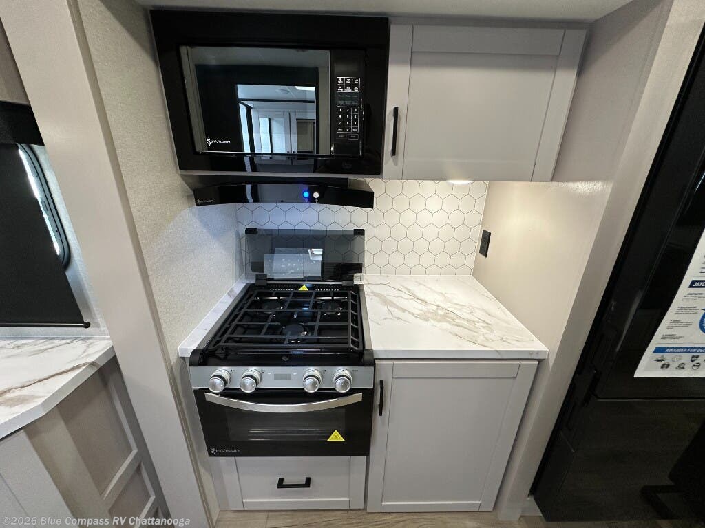With any Jay Feather travel trailer by Jayco, you will enjoy lightweight towing, convenient exterior amenities, and at-home comforts inside! The Overlander 1 Solar Package included within the Jay Sport Package comes with a 200W solar panel and a 30-amp digital controller so you can enjoy some off-grid camping. There is also a modern graphics package with a dual-colored sidewall, LCI Solid Step fold-down aluminum tread steps on the main entry door, and Climate Shield 0 -100° F tested weather insulation package that will allow you to camp in all sorts of climates. The Customer Value Package will make time outdoors easier than ever with a power tongue jack and a Rock Solid stabilizer system, plus American-made nitro-filled Goodyear tires with self-adjusting electric brakes. More exterior features include a Keyed-Alike locking system, marine grade exterior speakers, a Magnum Truss roof system, and the list goes on! And we haven't even touched on the interior comforts, like the residential style seamless countertops and vinyl flooring throughout, decorative backsplash, handcrafted hardwood door/drawer fronts, and multiple USB charging ports to keep you going!