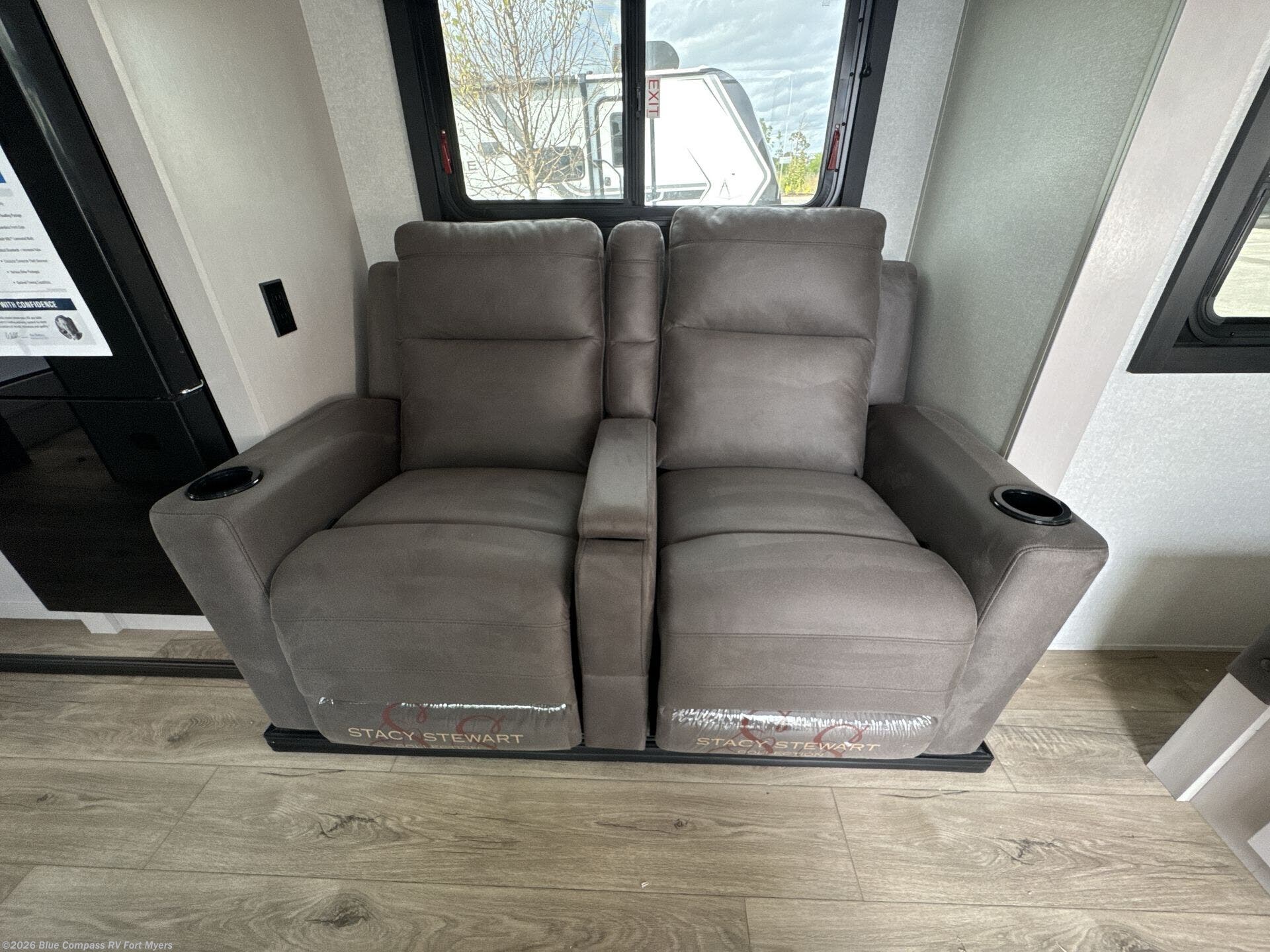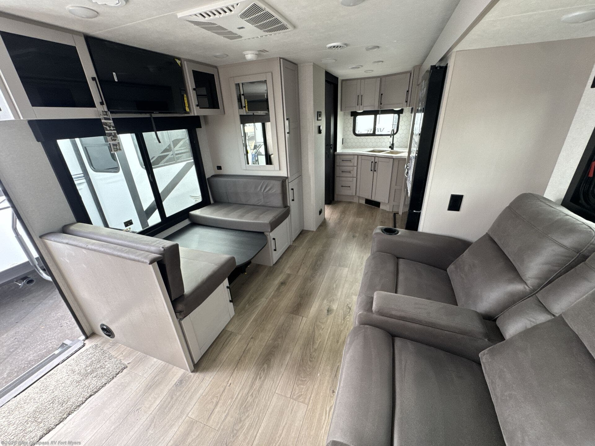 If you wish to escape the hustle and bustle of everyday life, then you need this travel trailer! It features a front Murphy bed with wardrobes on either side for bedtime and a jack-knife sofa during the day. You can play games at the booth dinette after enjoying a delicious meal prepared with the three burner cooktop or relax at the theater seating and enjoy the LED TV. The rear corner bathroom has a shower with a skylight for you to get cleaned up in, as well as a linen closet to store your towels. There is exterior storage space to keep your outdoor gear, a 15' power awning to protect you from the elements.