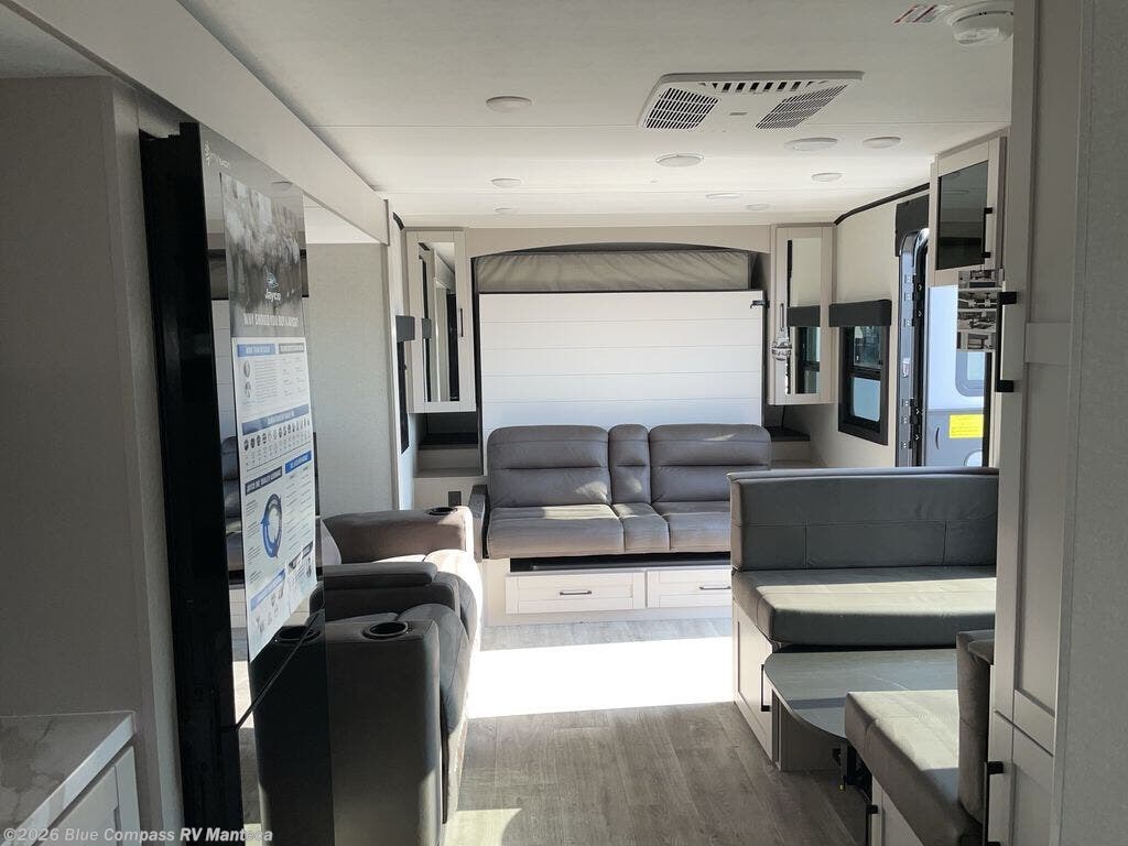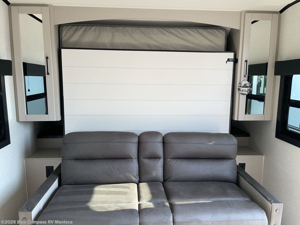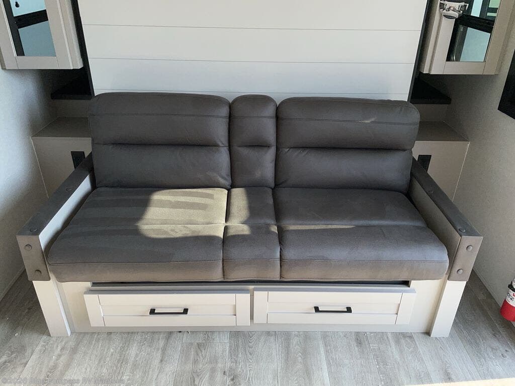 If you wish to escape the hustle and bustle of everyday life, then you need this travel trailer! It features a front Murphy bed with wardrobes on either side for bedtime and a jack-knife sofa during the day. You can play games at the booth dinette after enjoying a delicious meal prepared with the three burner cooktop or relax at the theater seating and enjoy the LED TV. The rear corner bathroom has a shower with a skylight for you to get cleaned up in, as well as a linen closet to store your towels. There is exterior storage space to keep your outdoor gear, a 15' power awning to protect you from the elements.