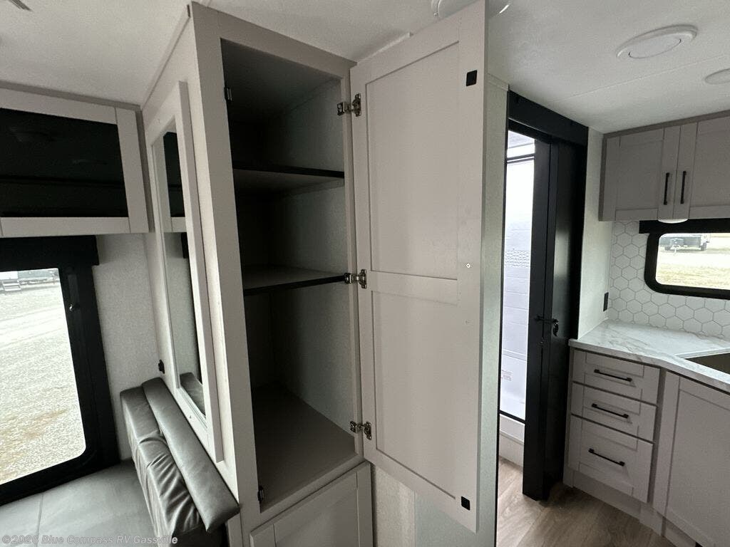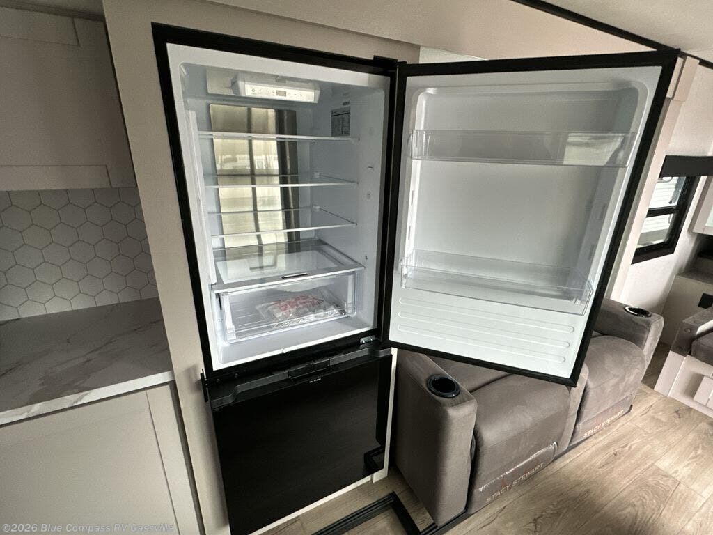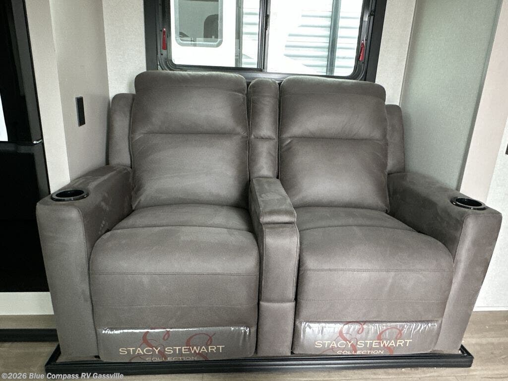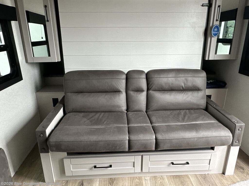 If you wish to escape the hustle and bustle of everyday life, then you need this travel trailer! It features a front Murphy bed with wardrobes on either side for bedtime and a jack-knife sofa during the day. You can play games at the booth dinette after enjoying a delicious meal prepared with the three burner cooktop or relax at the theater seating and enjoy the LED TV. The rear corner bathroom has a shower with a skylight for you to get cleaned up in, as well as a linen closet to store your towels. There is exterior storage space to keep your outdoor gear, a 15' power awning to protect you from the elements.
