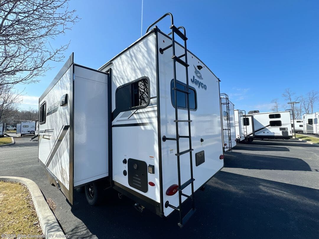 With any Jay Feather travel trailer by Jayco, you will enjoy lightweight towing, convenient exterior amenities, and at-home comforts inside! The Overlander 1 Solar Package included within the Jay Sport Package comes with a 200W solar panel and a 30-amp digital controller so you can enjoy some off-grid camping. There is also a modern graphics package, Solid fold-down step with aluminum tread steps on the main entry doorstep, and Climate Shield 0 -100° F tested weather insulation package that will allow you to camp in various types of climates. The Customer Value Package will make time outdoors easier than ever with a power tongue jack and Automotive-style aluminum rims, plus radial tires with self-adjusting electric brakes. More exterior features include a Keyed-Alike doors, a Magnum Truss roof system, and the list goes on! And we haven't even touched on the interior comforts, like the seamless countertops and Residential vinyl flooring throughout, decorative kitchen backsplash, handcrafted hardwood door/drawer fronts, and multiple USB charging ports to keep you going!