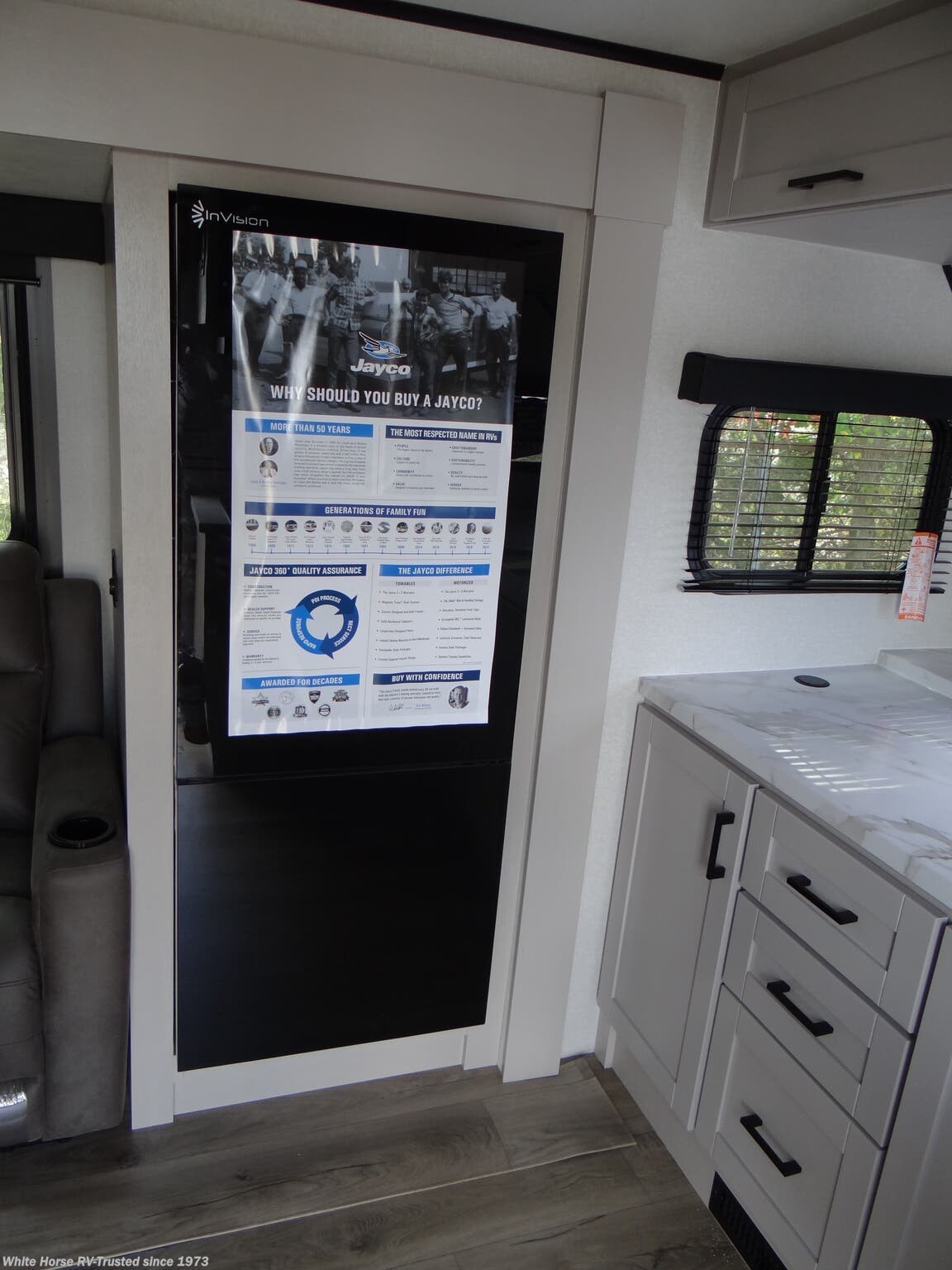 Jay Sport Package: 11 Cu. Ft. 12V Refrigerator, App Monitored TPMS (compatible w/ most Apple Car Play & Android Auto), Climate Shield (Zero to 100 Degree Tested Weather Insulation Package), Front Slam Latch Baggage Doors, Invision Kitchen Appliance Package, Solid Fold Down Step w/ Aluminum Tread On Main Entry Door Step, LED Smart TV, Modern Graphics Package, Porcelain Foot-Flush Toilet, Overlander 1 Solar Package: (1) 200 Watt Solar Panel and 30-Amp Digital Controller, Stainless Steel Double Basin Kitchen Sink, Keyed Alike Doors, Rear Exterior Ladder, Dark Tinted Privacy Windows